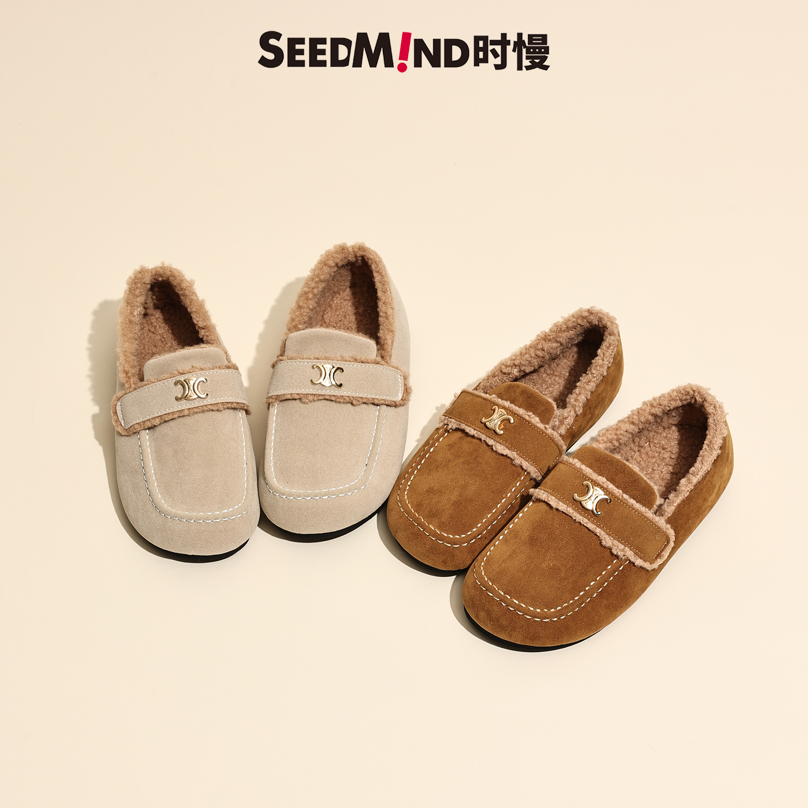 婚纱秀禾高跟两穿新娘婚鞋 法式 米乌毛毛勃肯鞋 Seedmind超温柔