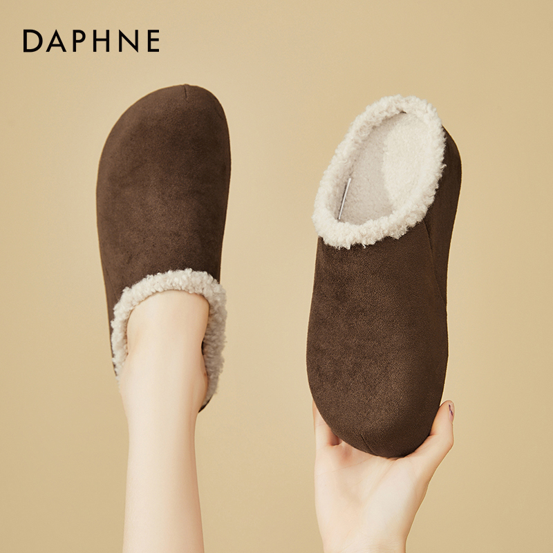 懒人一脚蹬勃肯单鞋 达芙妮包头半拖鞋 加绒保暖毛毛棉鞋 新款 女冬季