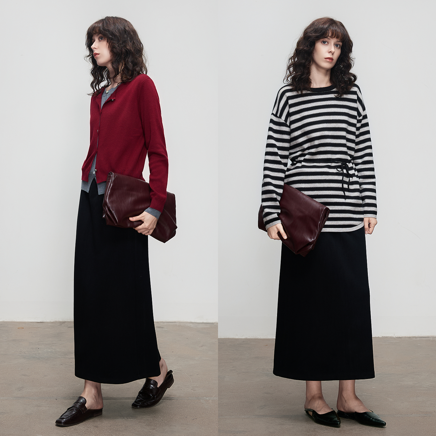 直筒裙 松紧腰气质中长款 德玛纳优雅风开叉针织半身裙女25秋季 新款