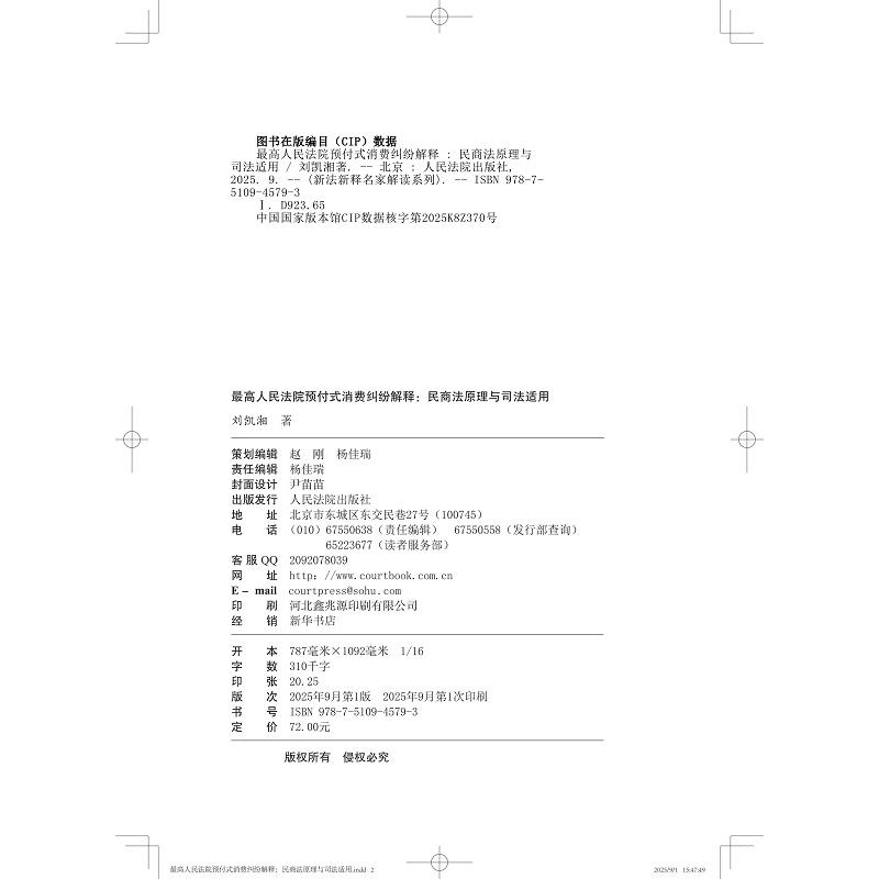 社 人民法院出版 最高人民法院预付式 消费纠纷解释:民商法原理与司法适用