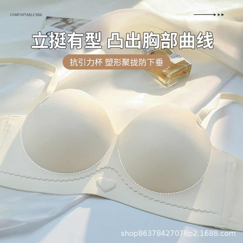 内衣半杯女夏季 小胸聚拢显大上托防下垂文胸无钢圈美背无肩带 厚款