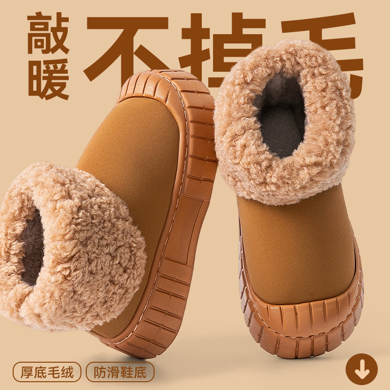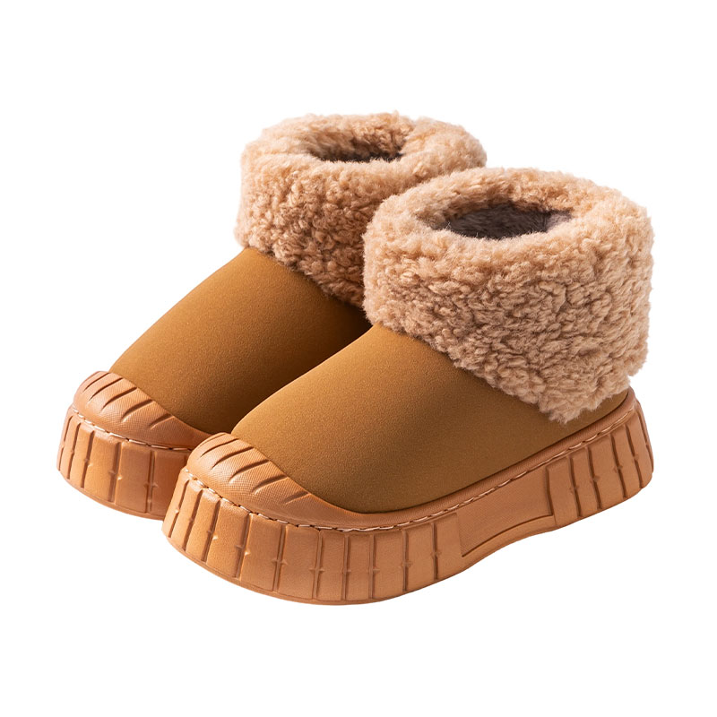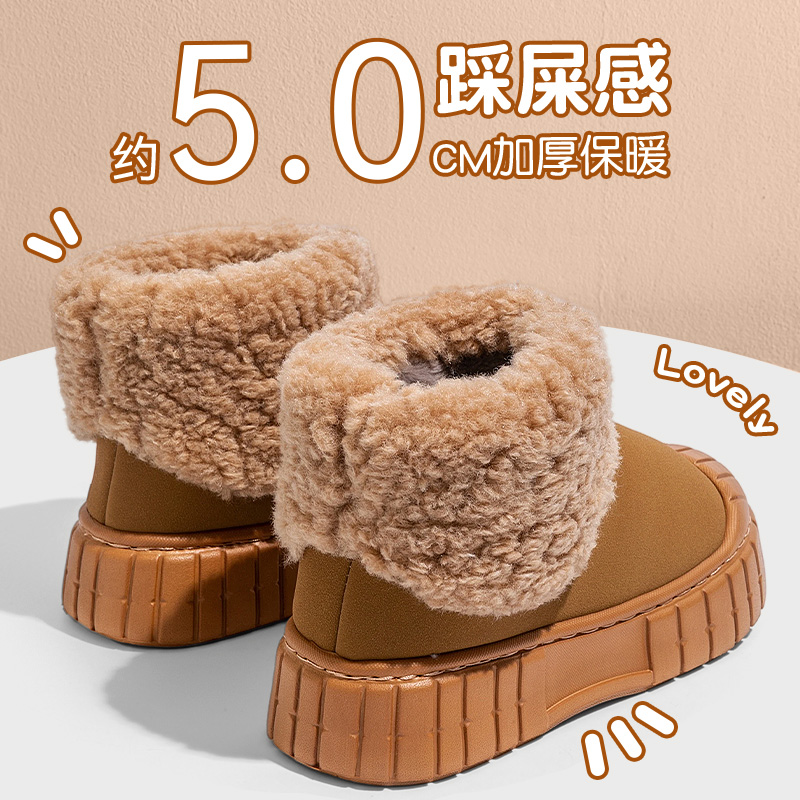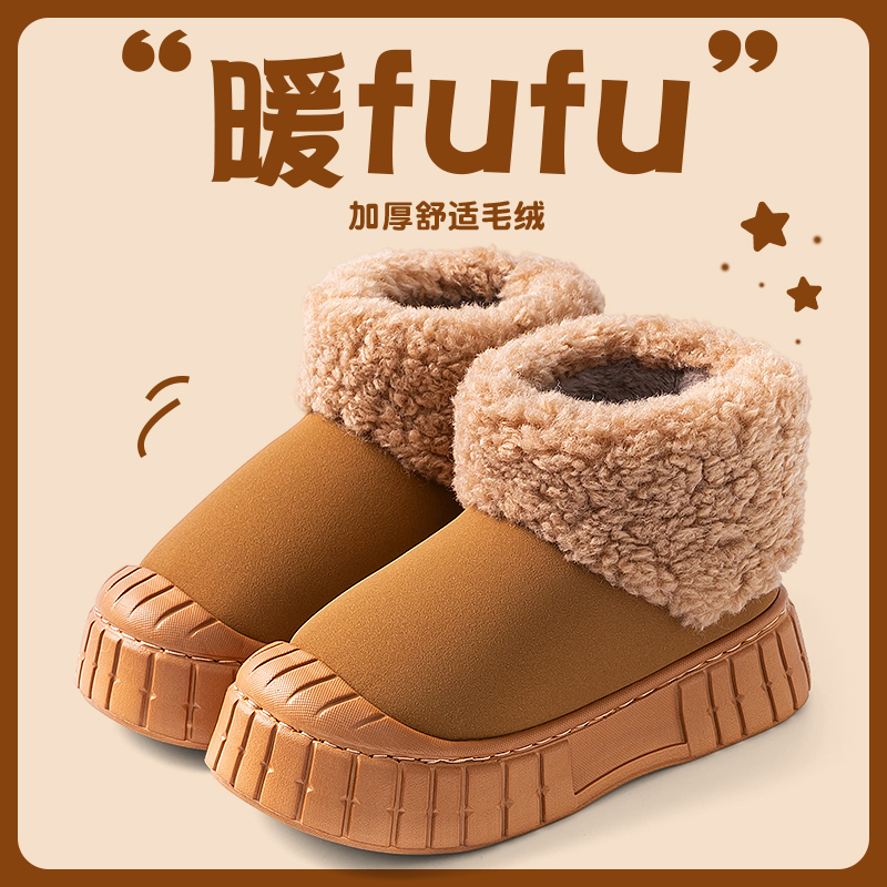 可外穿2025新款 时尚 秋冬季 女款 加绒保暖厚底高帮雪地靴女士 棉拖鞋