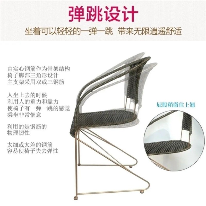 实心钢筋藤椅椅子靠背椅家用办公椅阳台休闲椅电脑麻将椅室内凳子