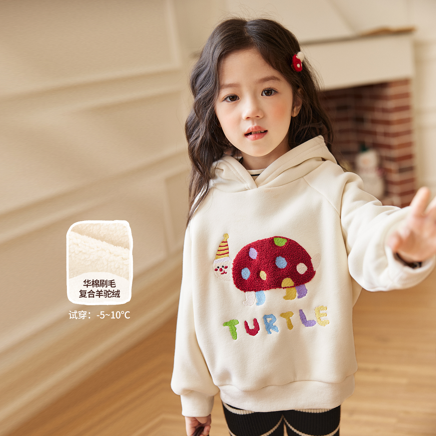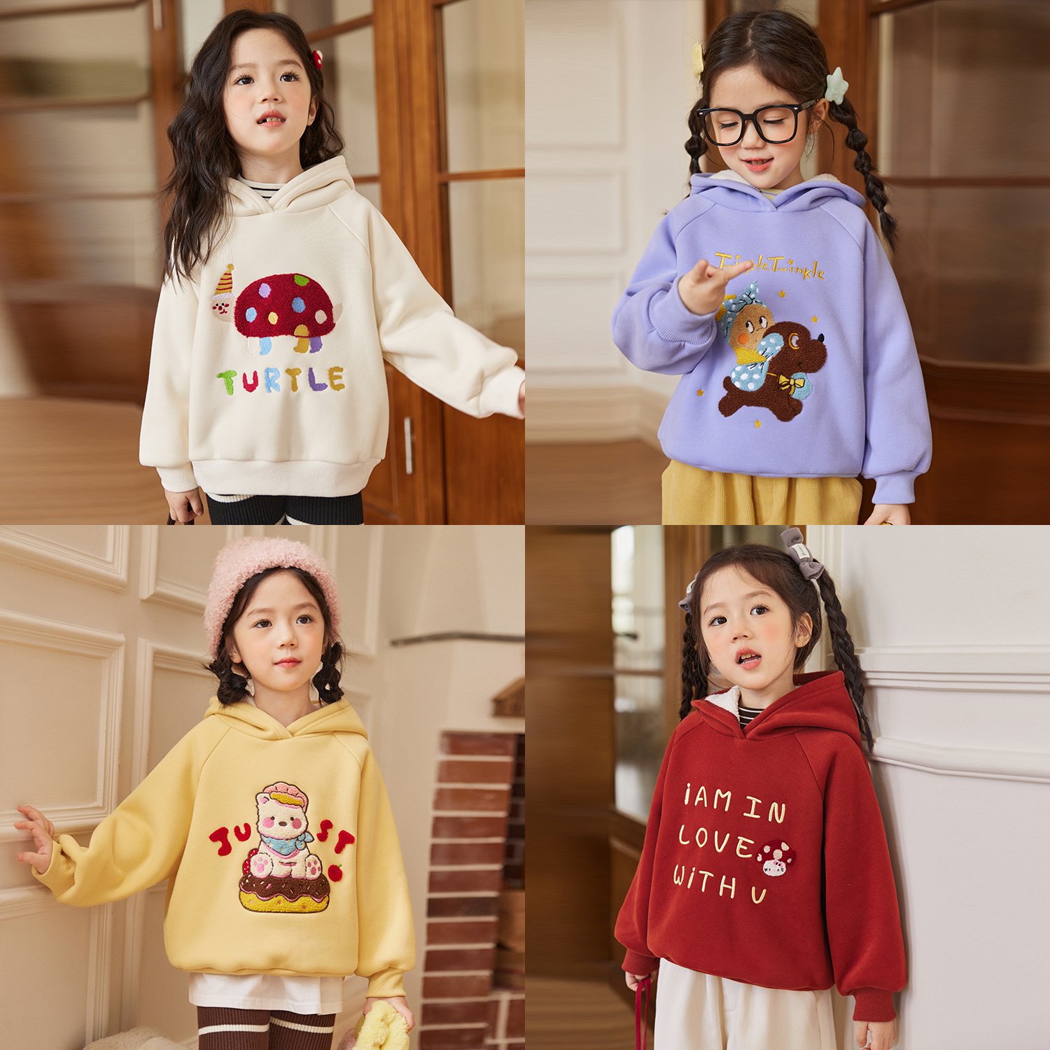 保暖洋气好看儿童连帽上衣 新款 NORNOR童装 女宝宝加绒卫衣2025冬季
