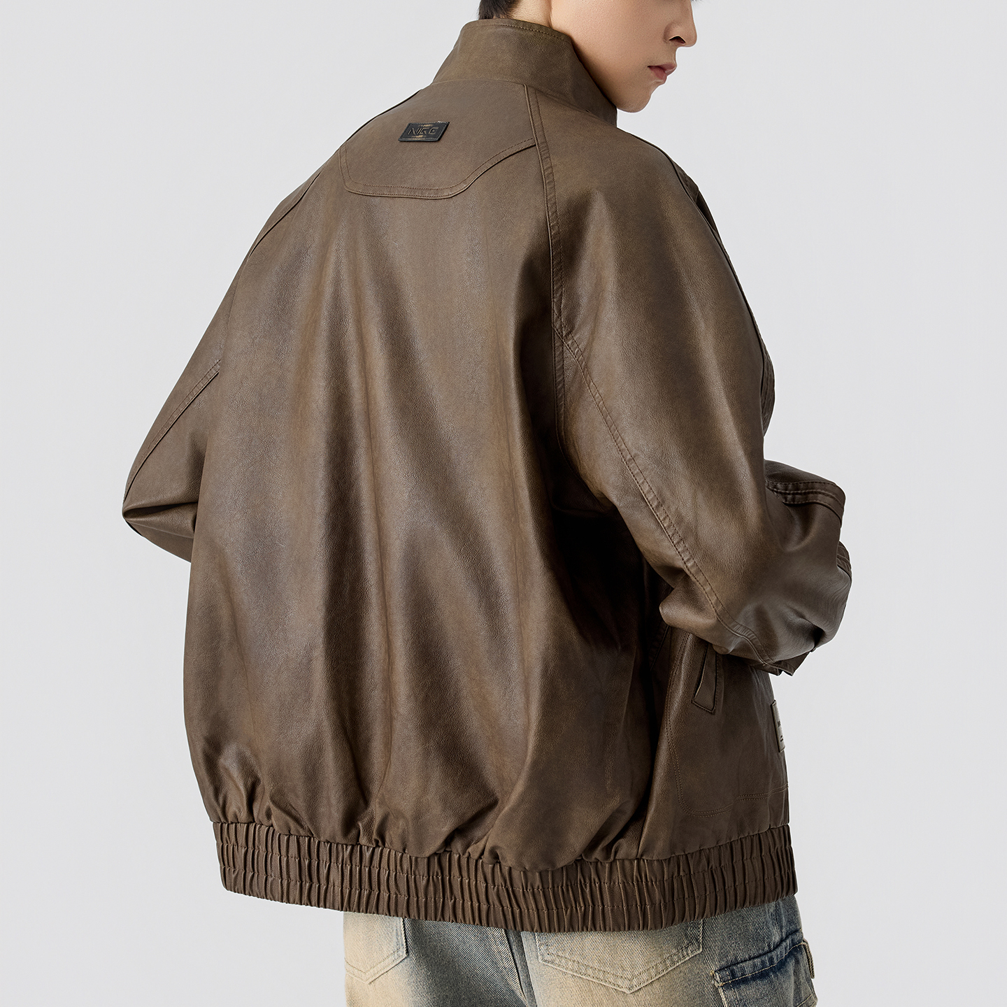 有志者UZIS美式 复古宽松户外防水皮衣夹克掣动 潮流运动外套男秋季