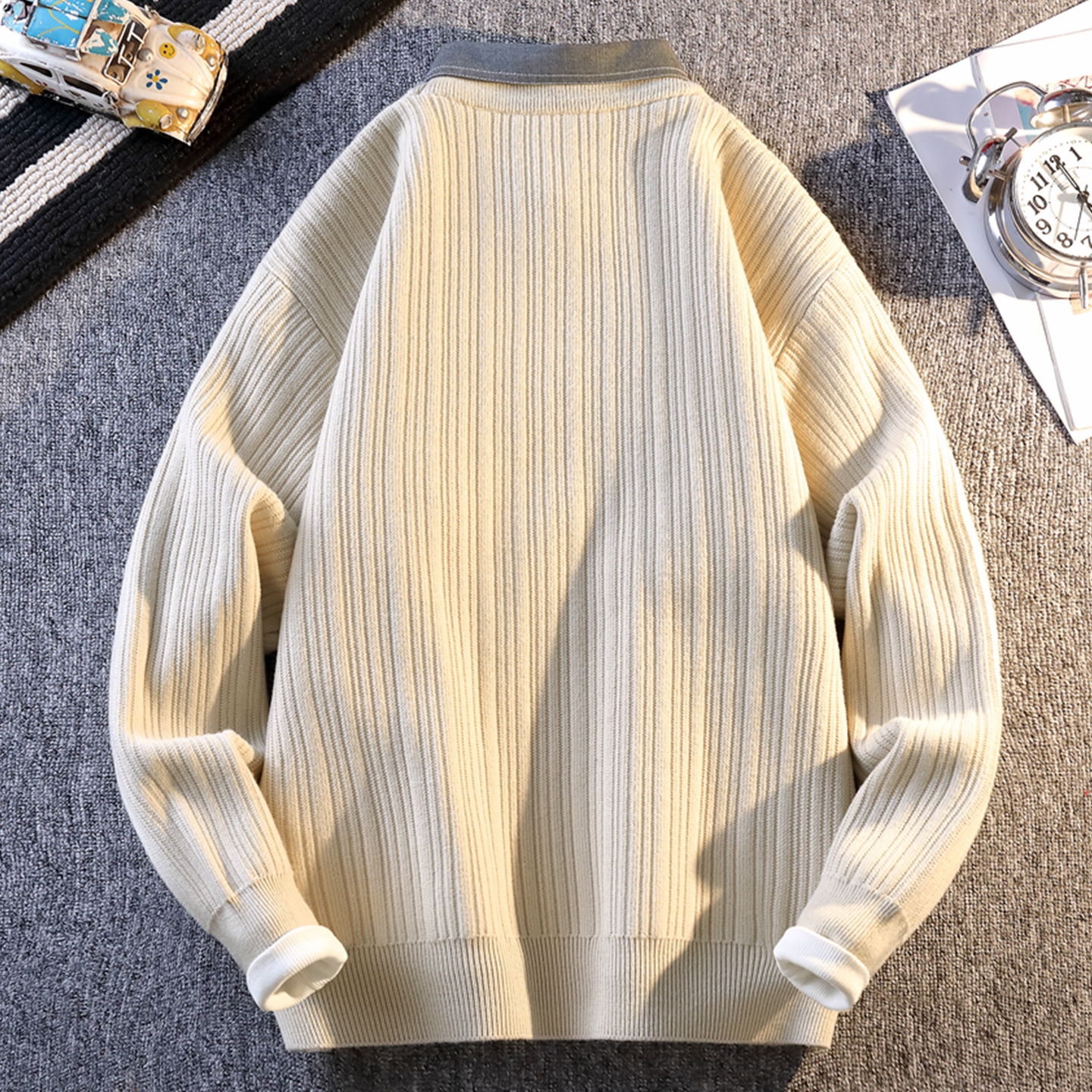 牛仔领假两件毛衣通勤宽松休闲针织衫 三福2025秋冬季 时尚 男士 新款