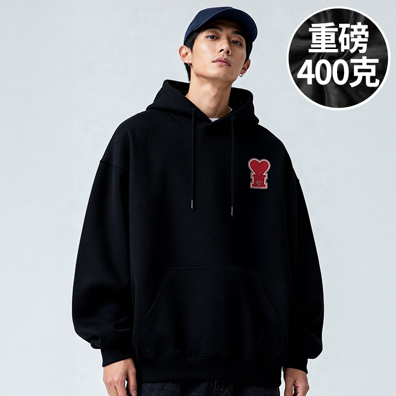 上衣服 宽松百搭潮流休闲情侣长袖 查尔斯桃心美式 连帽卫衣男女秋季