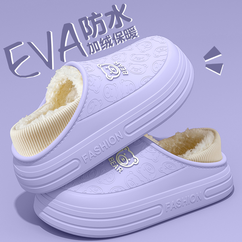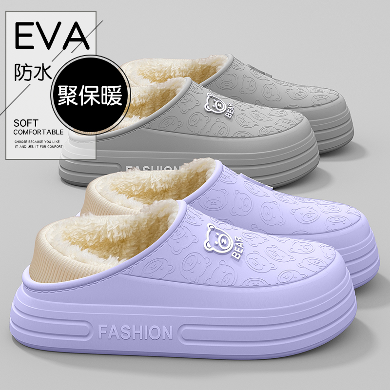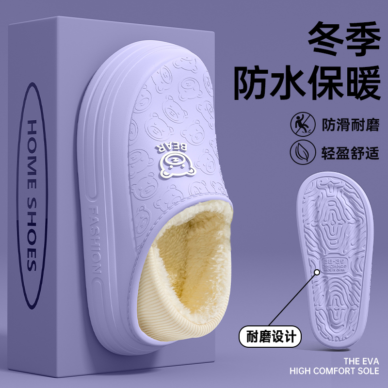 秋冬季 2025新款 室内家居加绒保暖防滑包跟厚底棉拖 女款 防水棉拖鞋