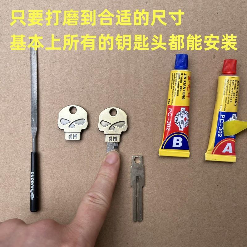 骷髅头DIY摩托车钥匙胚改装 通用摩托车电动车钥匙把手替换 手柄