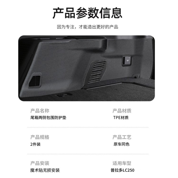 适用于普拉多LC250尾箱两边侧包防护垫绒面内饰TPE防刮耐磨侧包垫