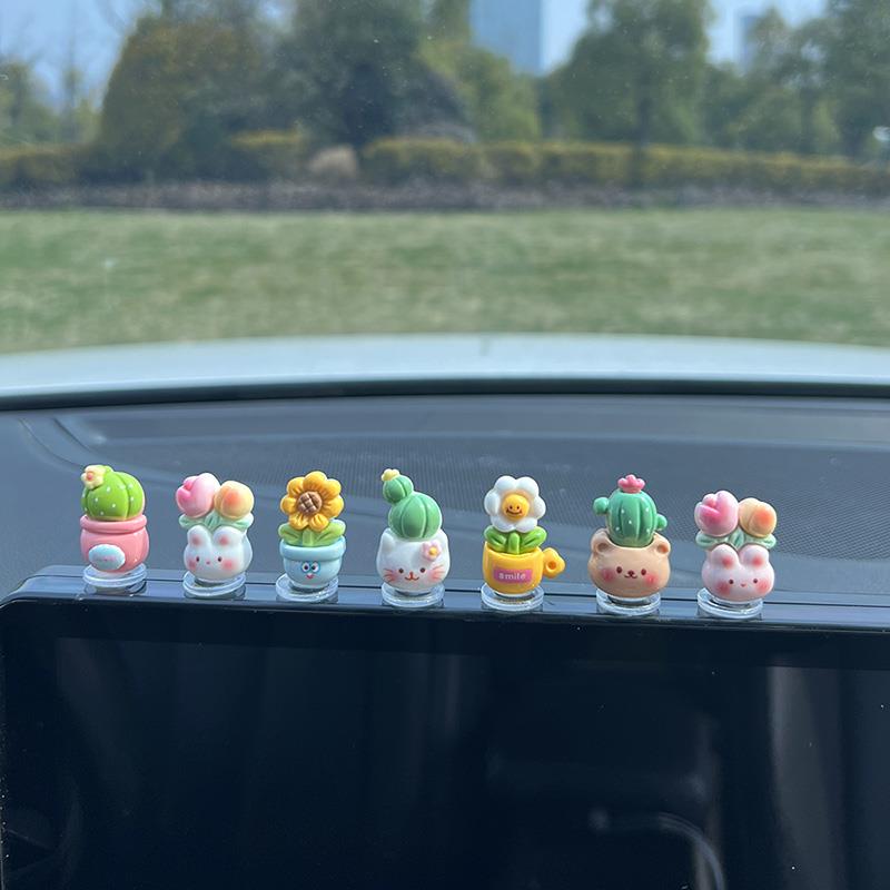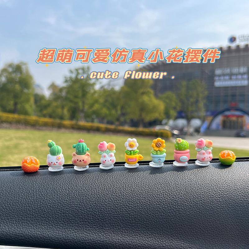 新款 饰大全 可爱彷真小花盆汽车摆件车载中控台女生车内用品配件装