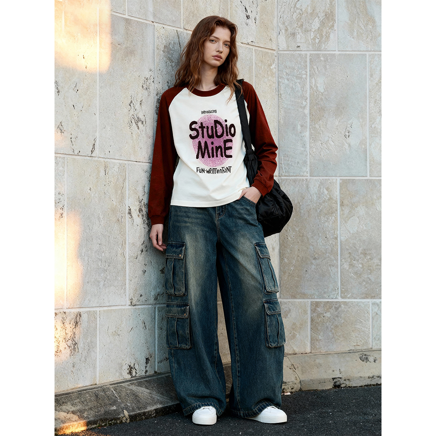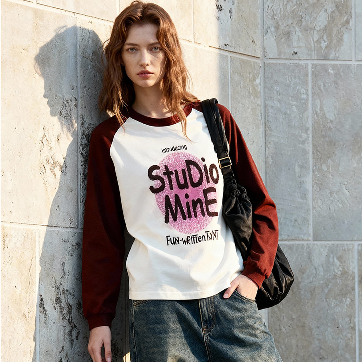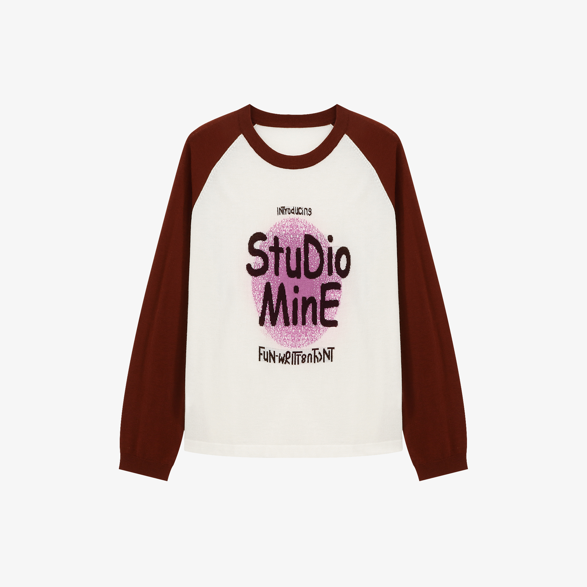 针织衫 百家好复古撞色插肩袖 圆领字母提花套头上衣女 House Basic
