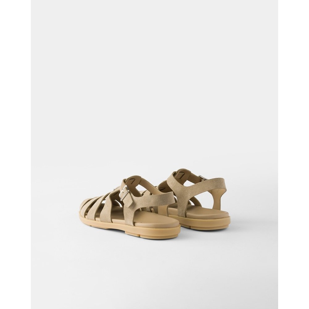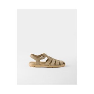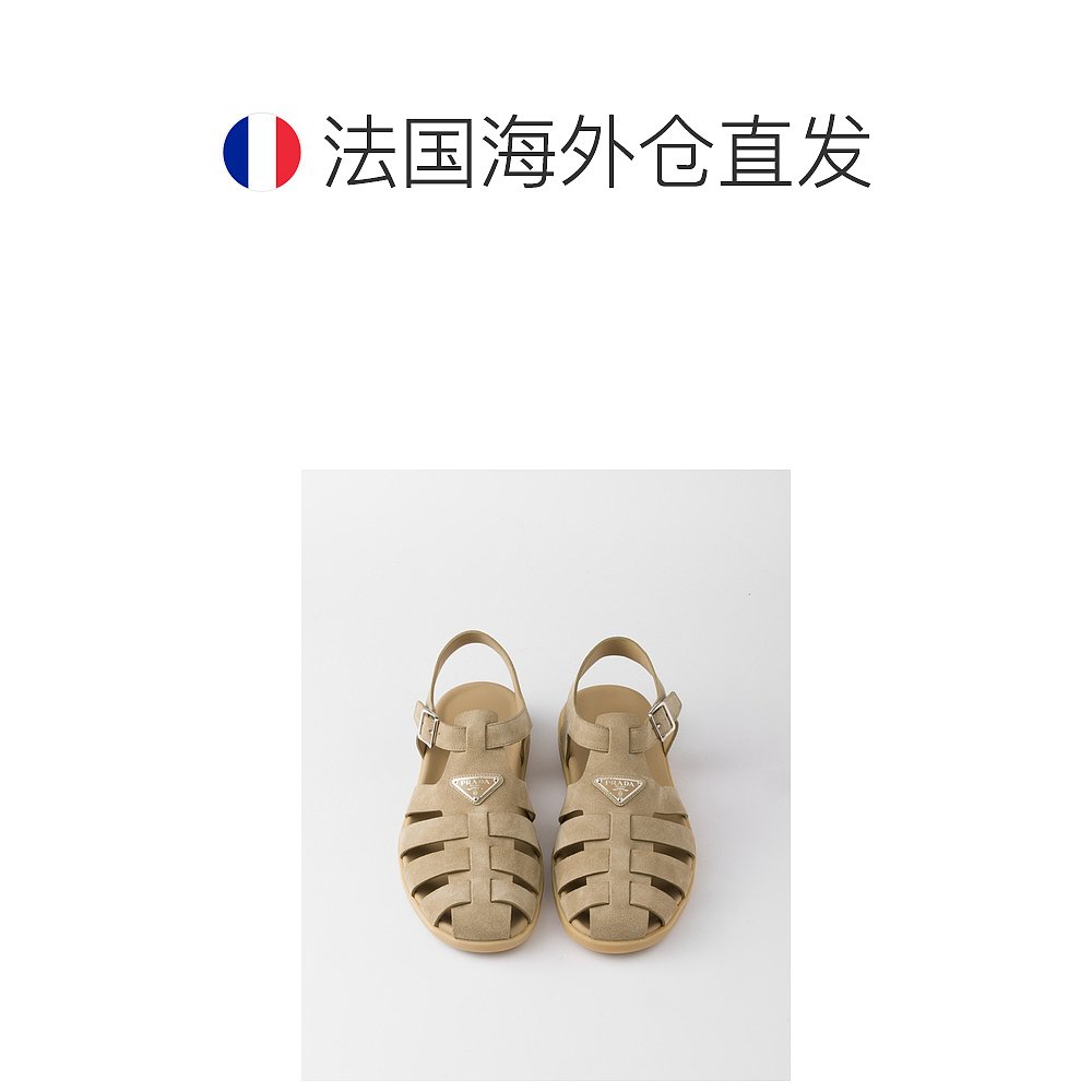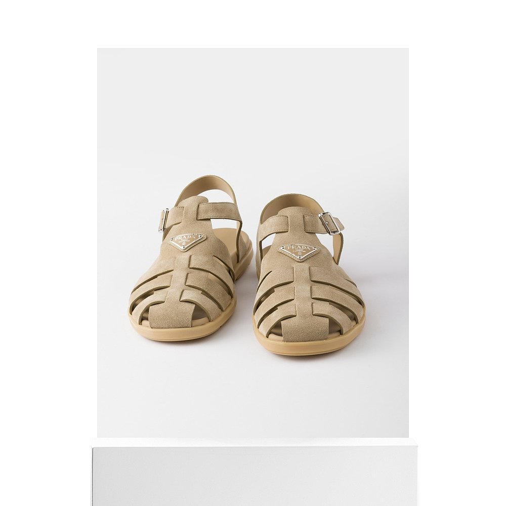 沙漠米色小牛皮金属三角标识凉鞋 自营欧洲直邮Prada普拉达 男士