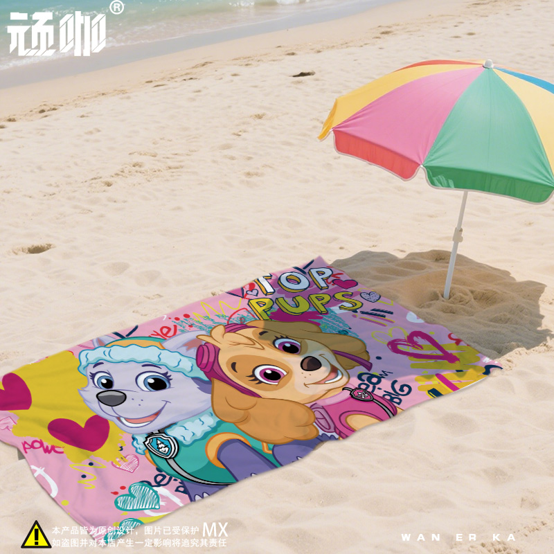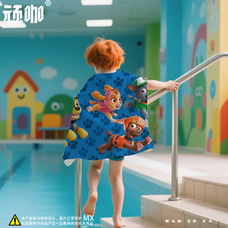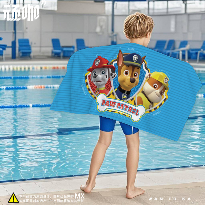 汪汪队防晒长披肩海边沙滩巾洗澡家用浴巾毛巾新款 幼儿园擦脸巾
