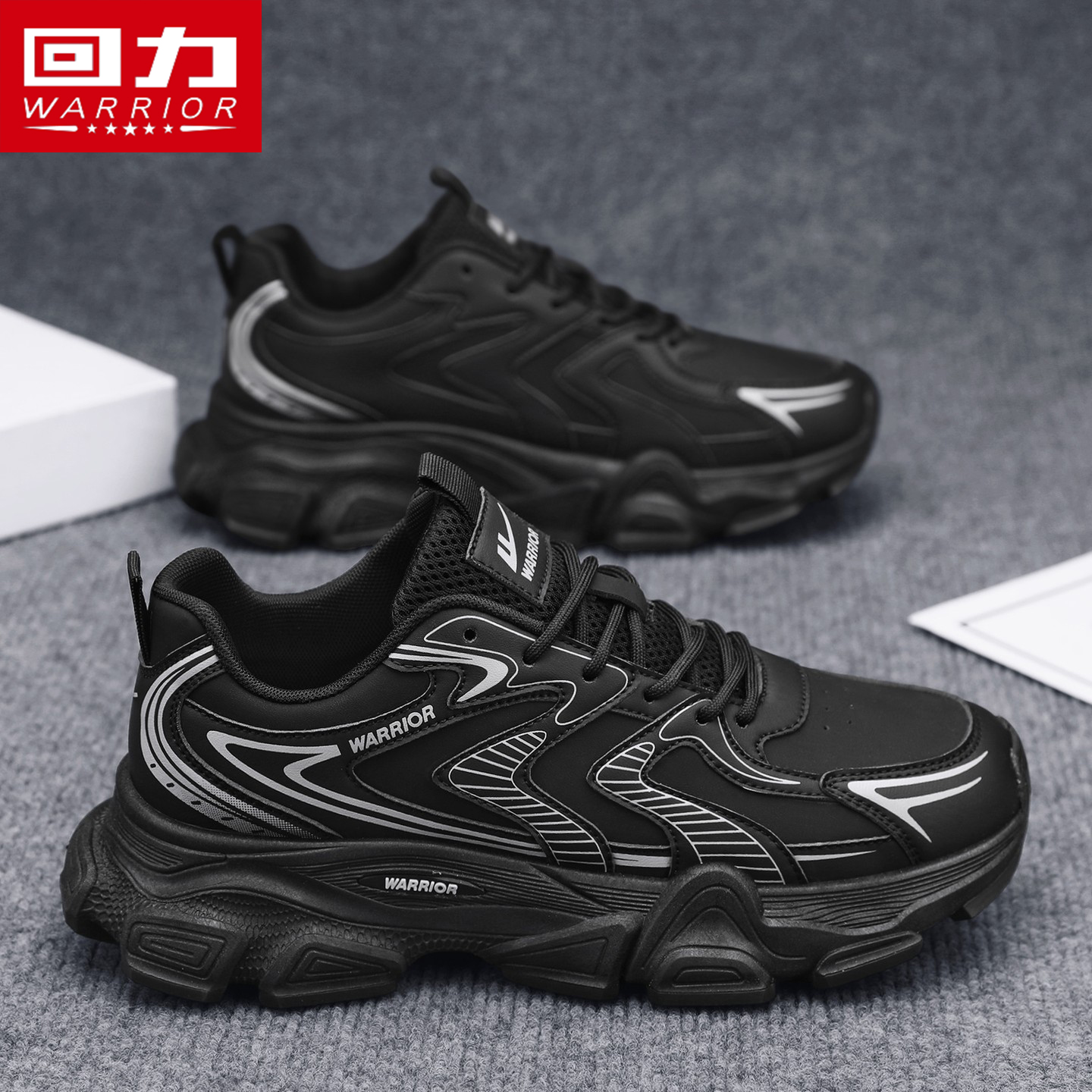 工作上班厚底增高宽脚耐磨防滑劳保鞋 皮面休闲老爹鞋 秋季 回力男鞋