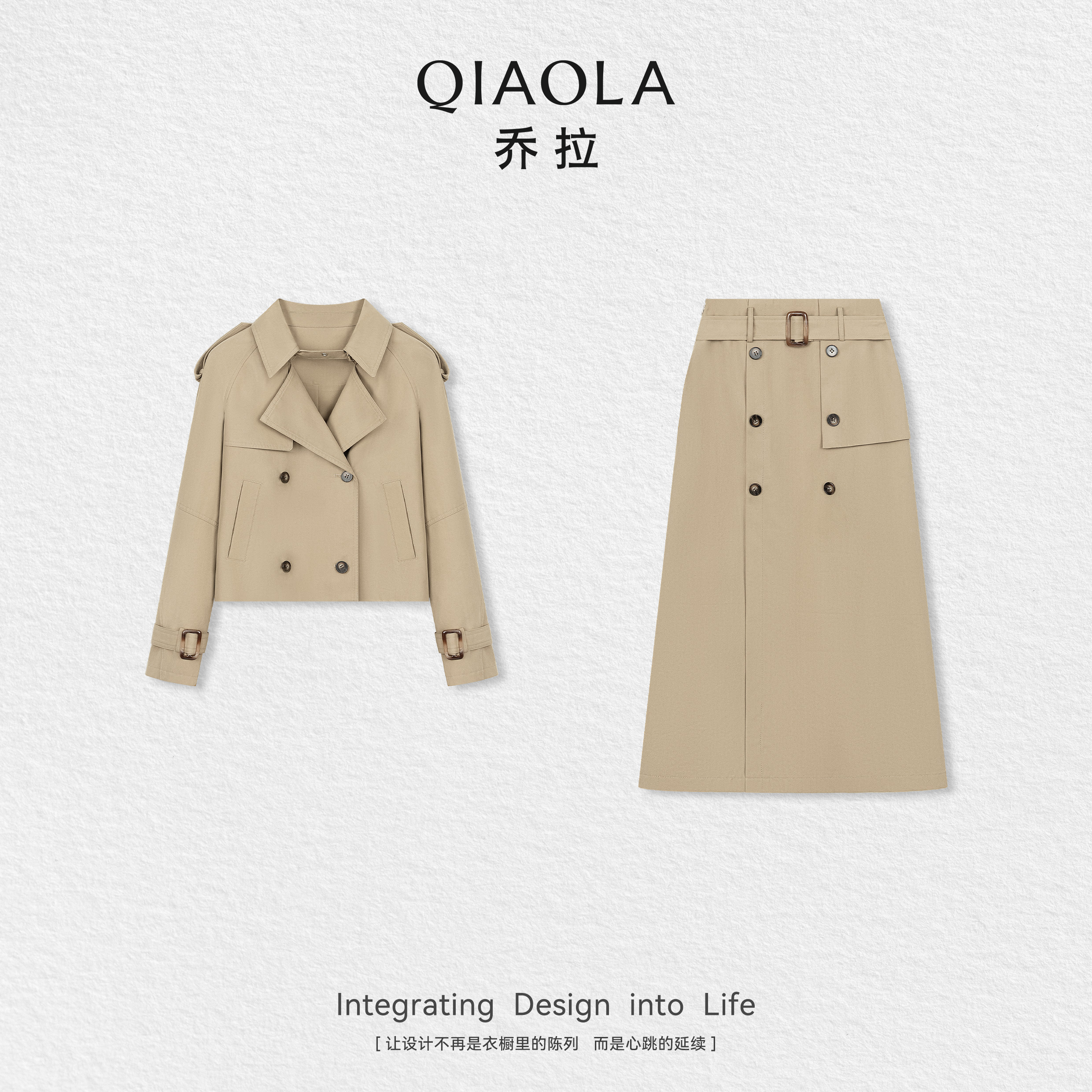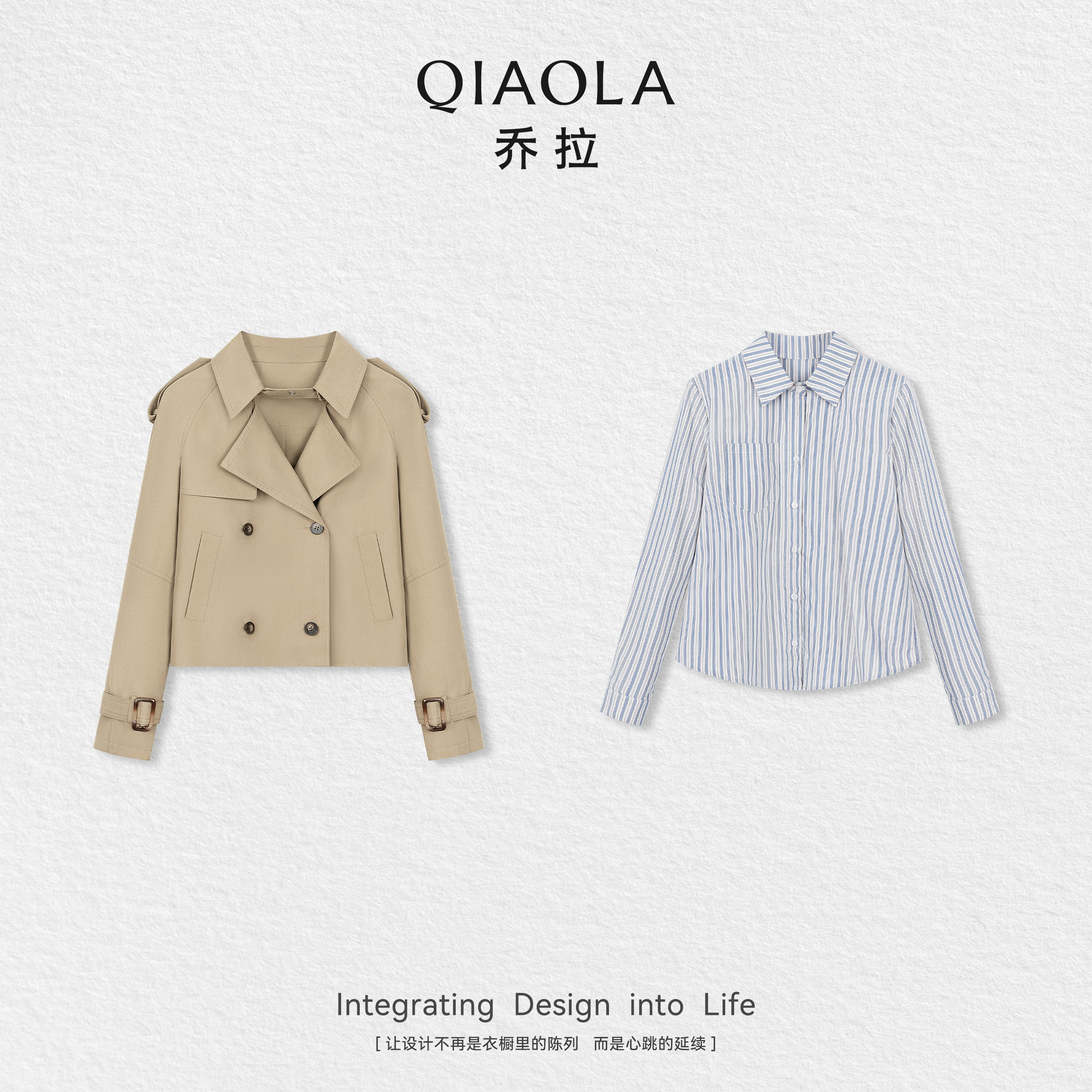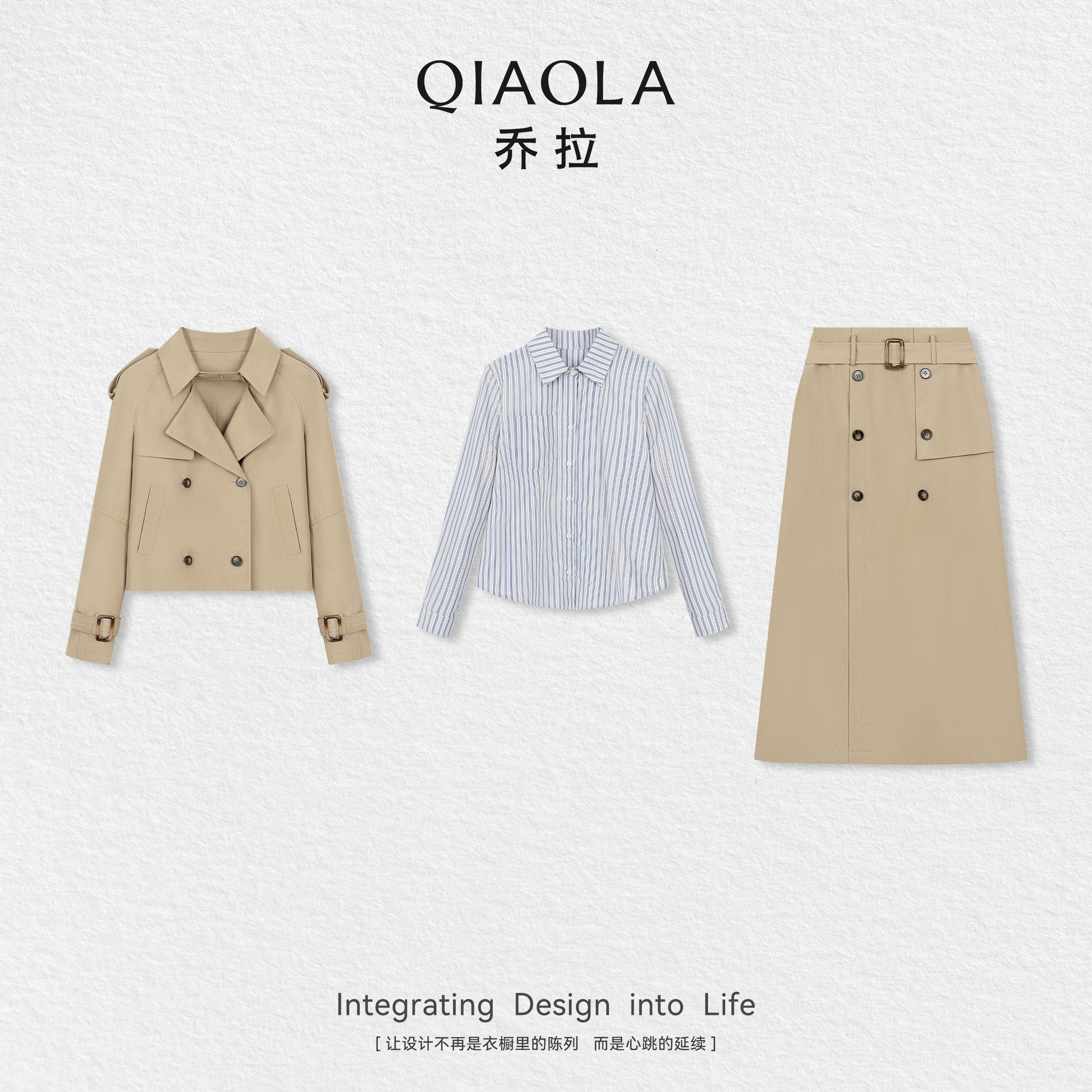 秋日爱丁堡 上衣裙子套装 秋季 百搭风衣外套条纹衬衫 女 新款 乔拉