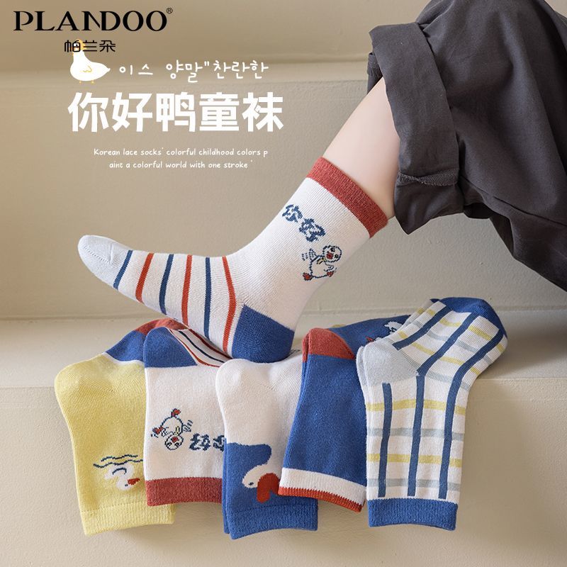 帕兰朵男宝中筒袜宝宝春秋卡通小鸭子舒适保暖蓝色系百搭儿童袜子