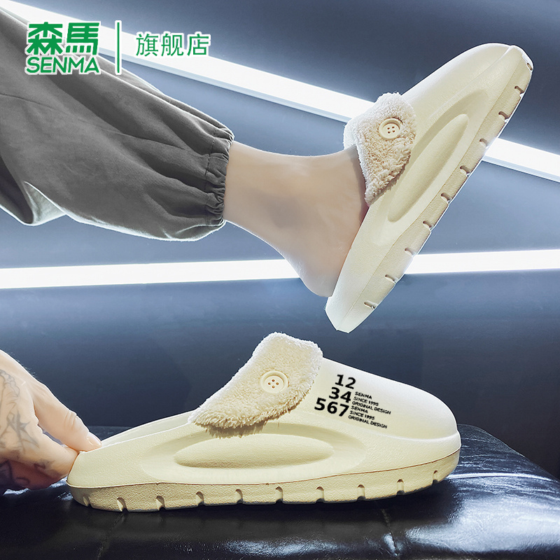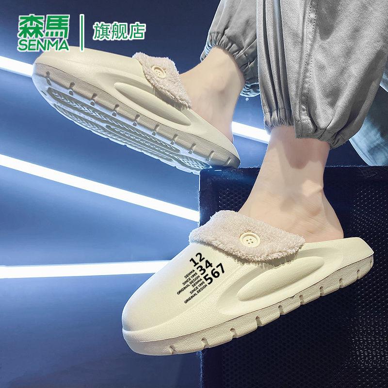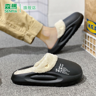 厚底外穿毛毛包头拖女 保暖加绒男款 森马拖鞋 情侣家居一对棉拖冬季