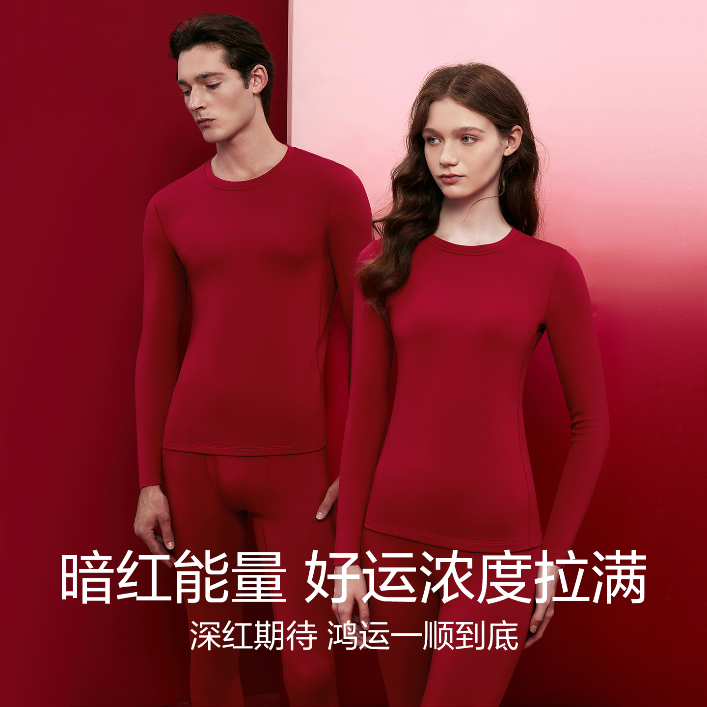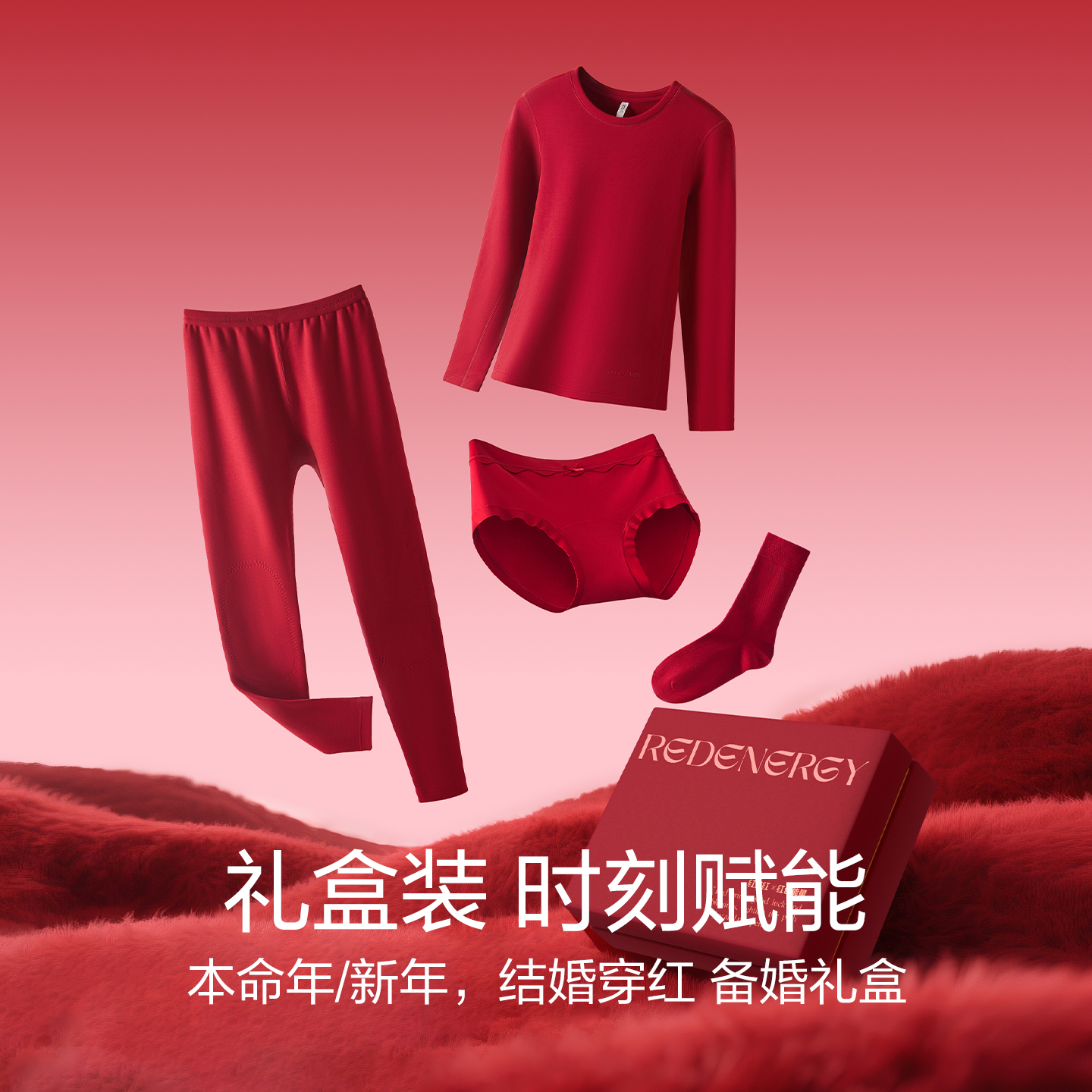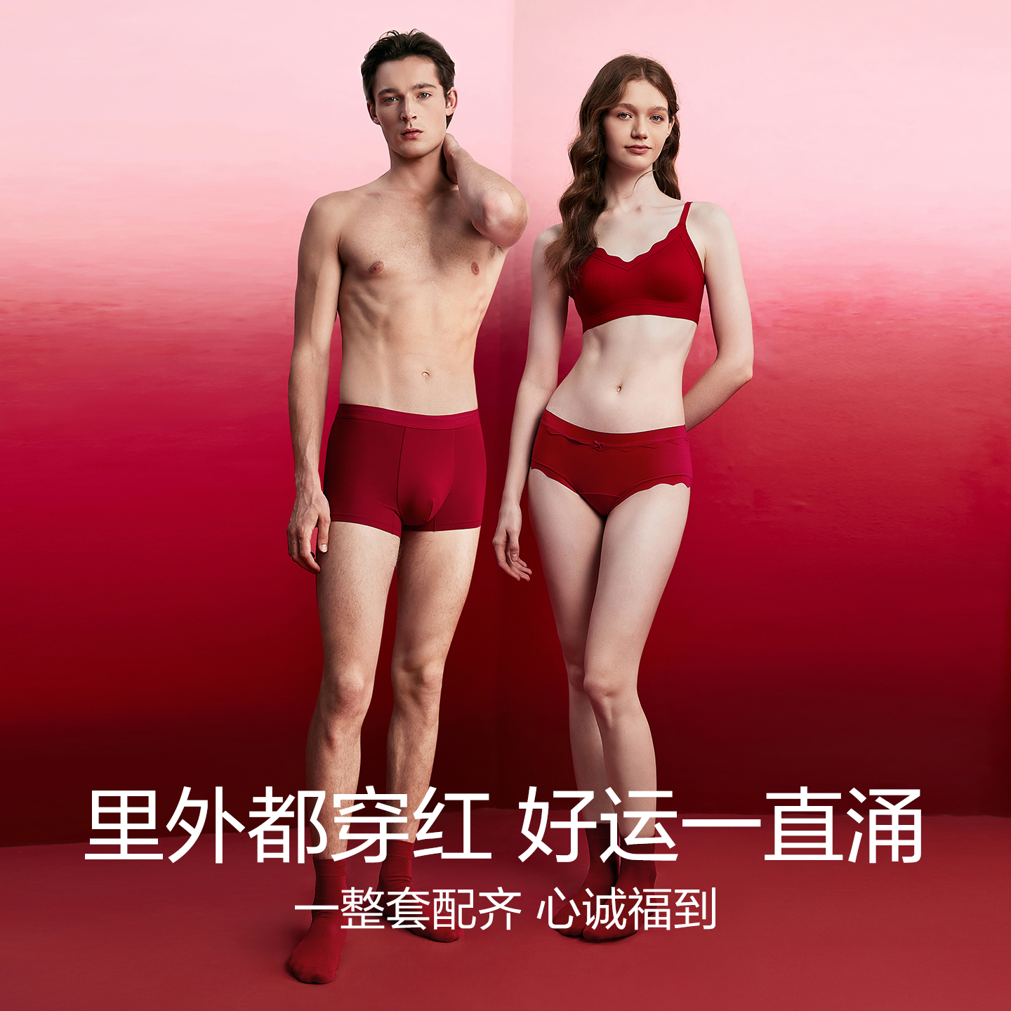 袜礼盒 红豆情侣红色保暖内衣男女结婚礼物本命年内裤 红色能量