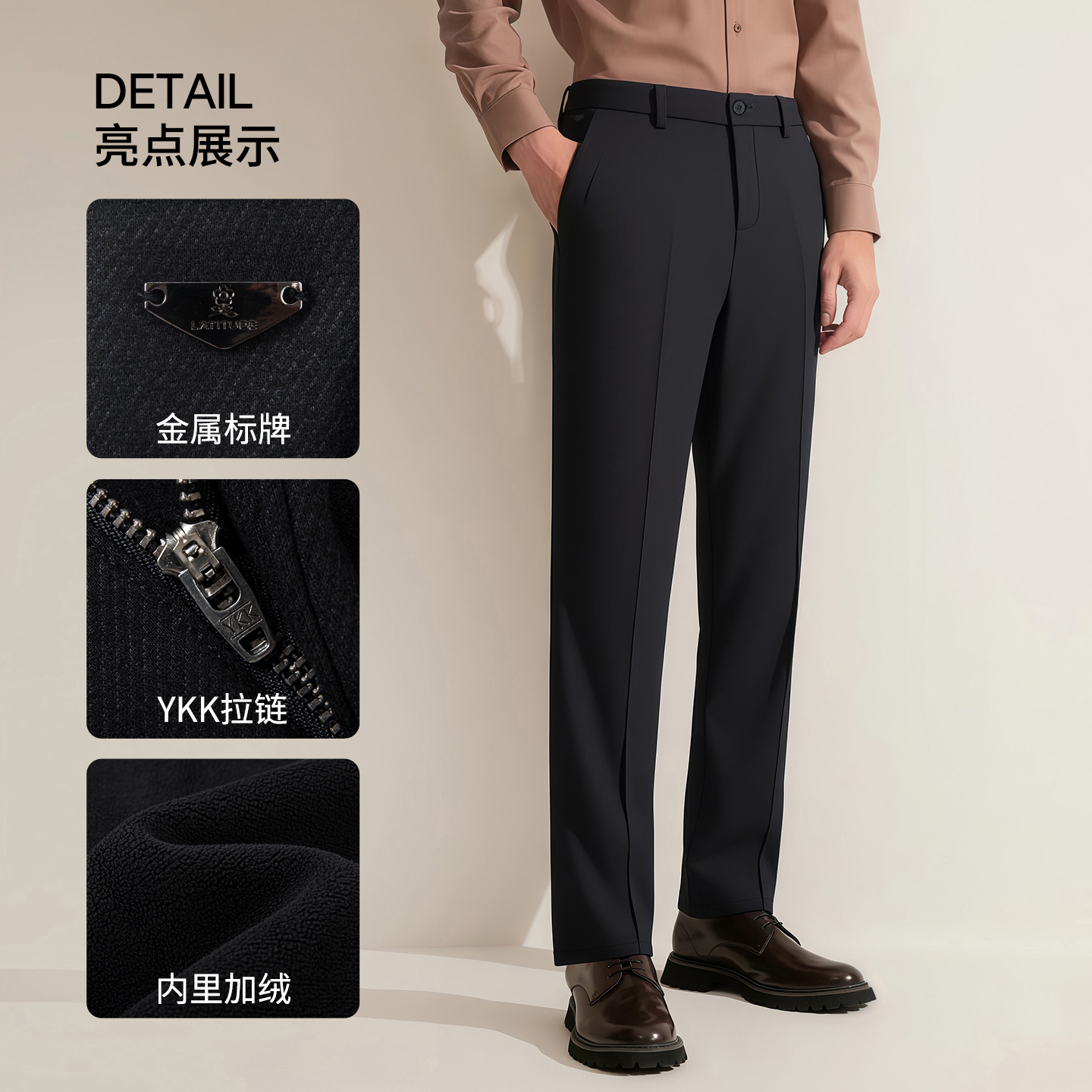羊毛加绒加厚 商务直筒长裤 梦特娇男士 25冬装 子抗皱保暖J 休闲裤