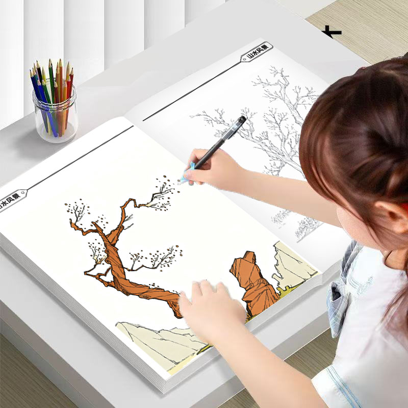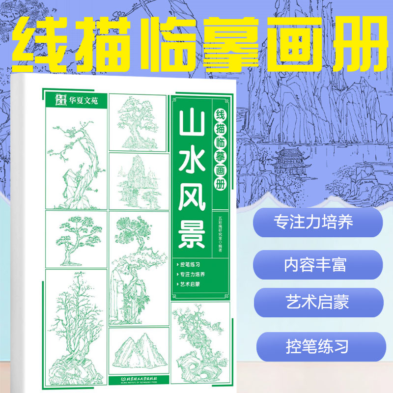 女孩图画古风专用纸基础自学教程绘 线描临摹画册.山水风景 儿童画画本q版 漫画入门手绘描摹本 画素描临摹练习画册书 漫画描摹本