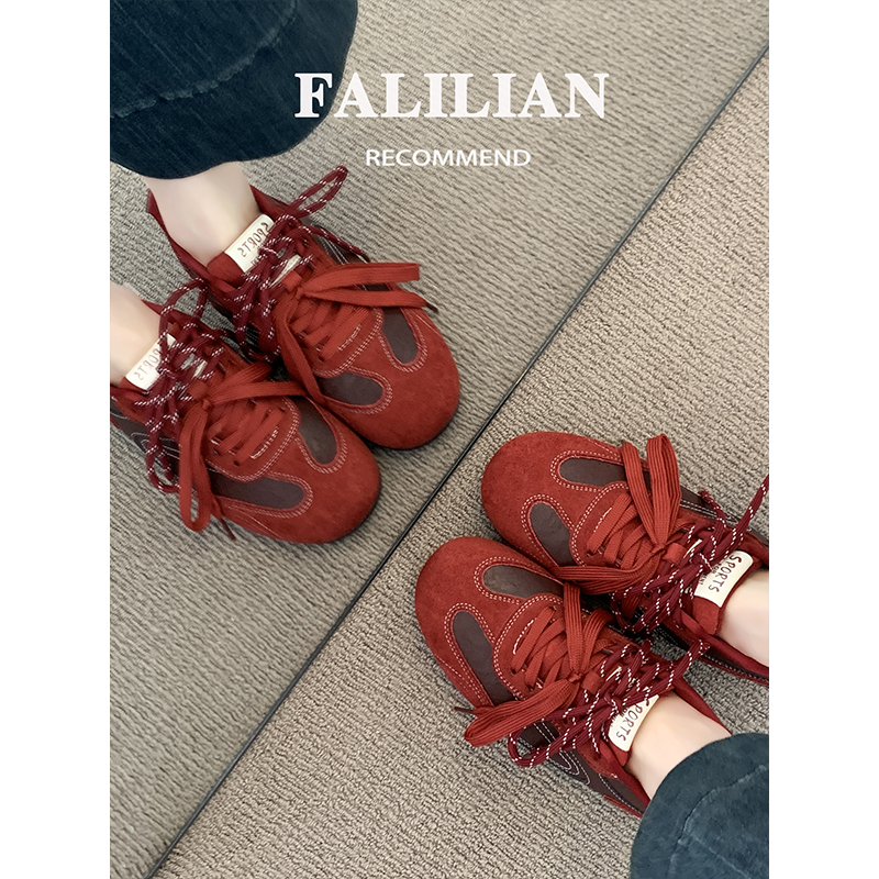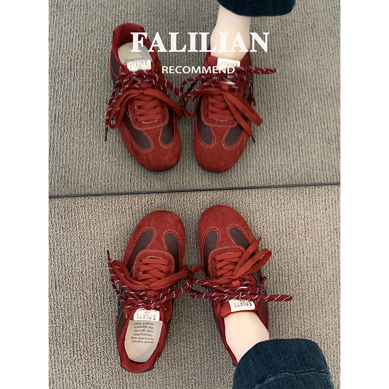 爆款 新款 红色板鞋 运动休闲鞋 热风麻薯德训鞋 薄底女鞋 2025年秋季