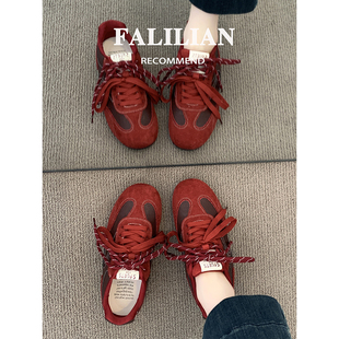 百搭小众设计感轻便休闲运动鞋 环球红色德训鞋 秋季 2025新款 潮 女款