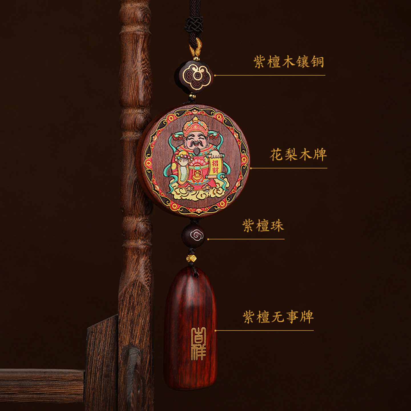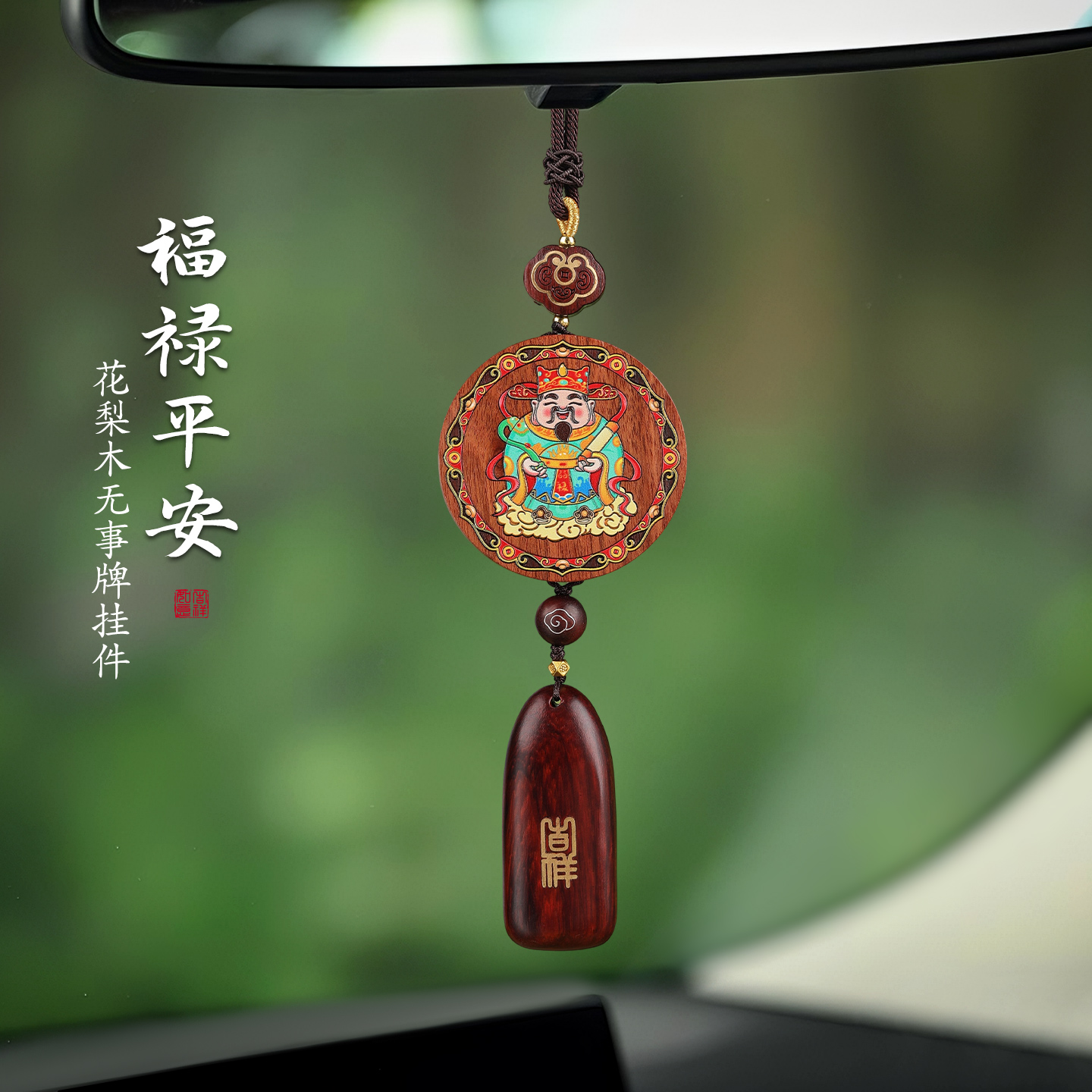 五路财神高档汽车挂件花梨木紫檀车挂福禄寿喜财车内饰品摆件男士