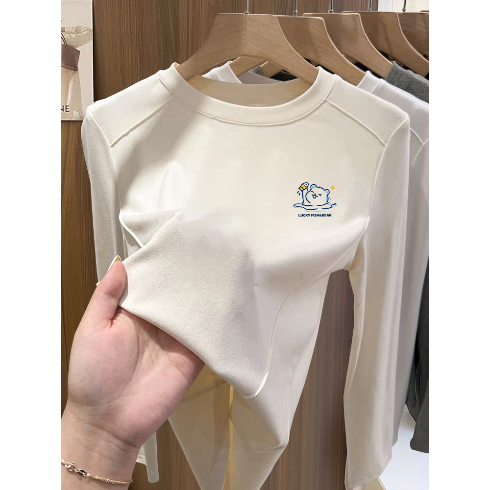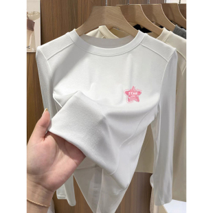 设计感宽松打底衫 大码 t恤女早秋2025新款 长袖 ins上衣 胖mm圆领修身
