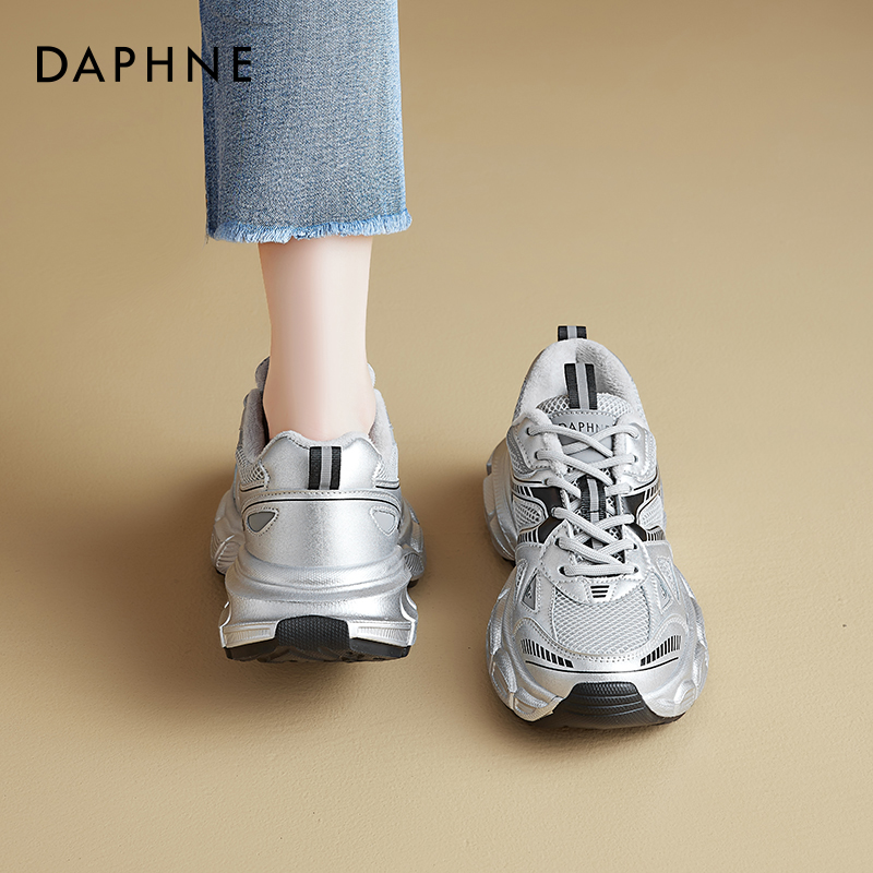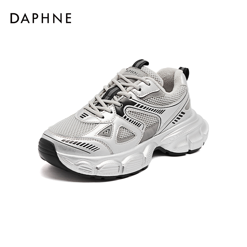 运动增高厚底雪地靴 秋冬保暖加绒棉鞋 达芙妮银色老爹鞋 女2025新款