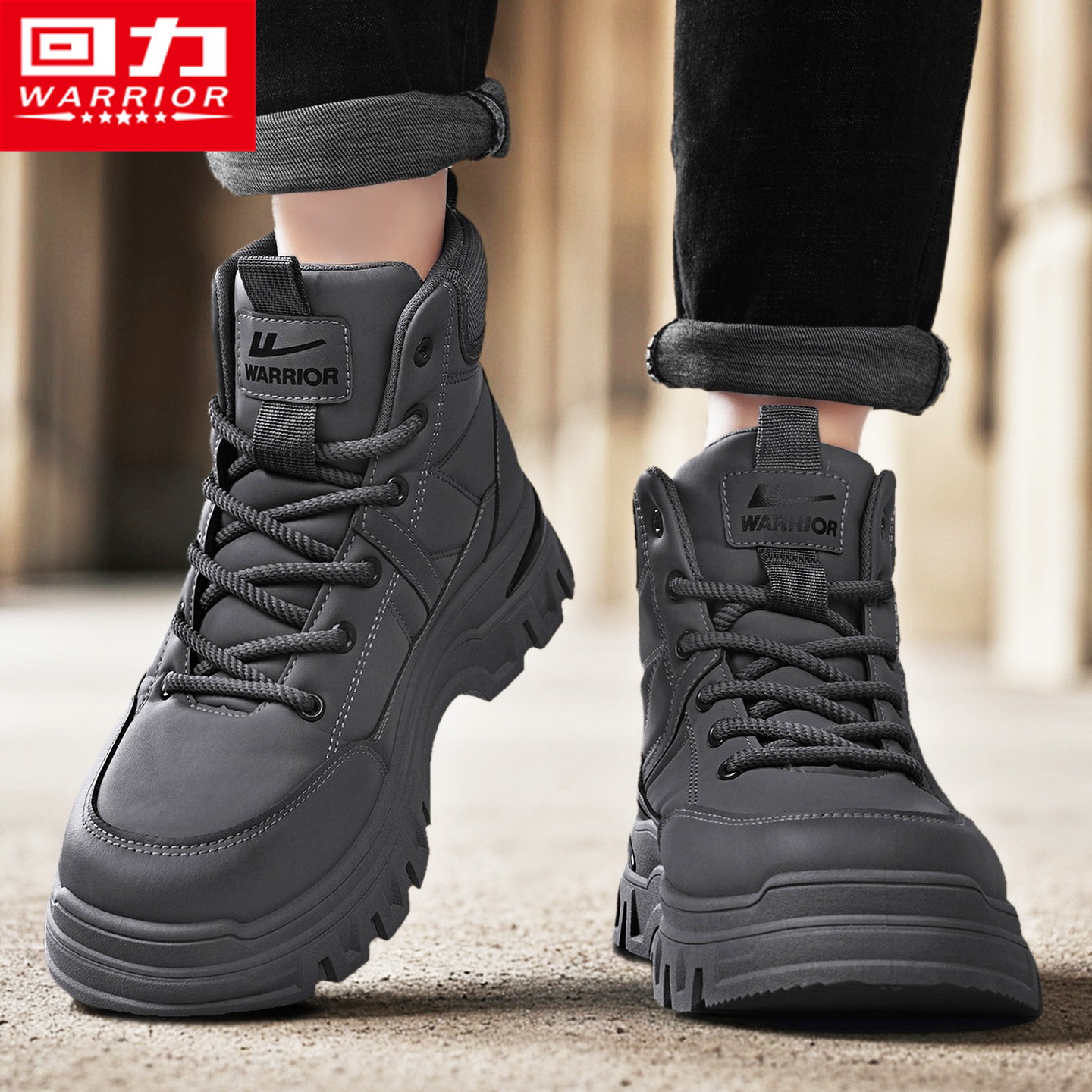鞋 帆布工装 男 子徒步登山马丁靴防滑露营劳保高帮骑行秋季 回力男鞋