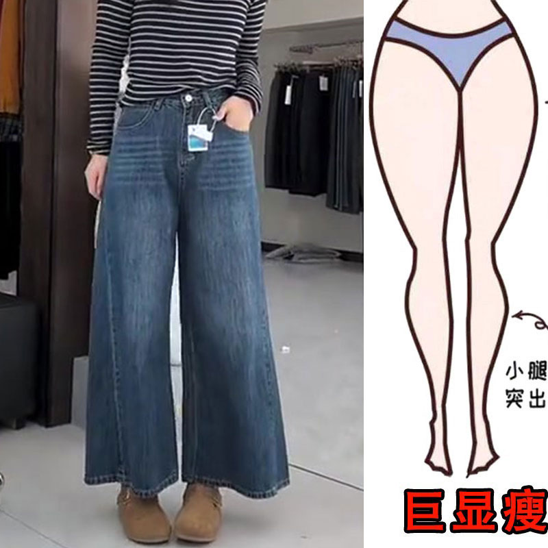 大码 新款 女装 时尚 复古蓝气质松弛感牛仔裤 高腰显瘦九分阔腿裤 秋季