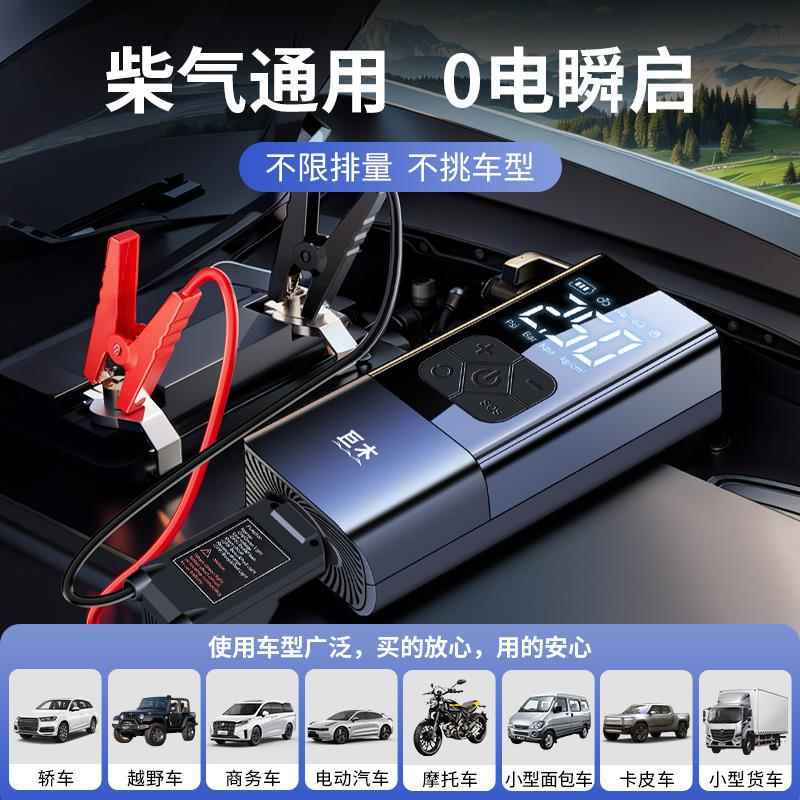 巨木汽车应急启动电源车载充气泵打火一体机12v电瓶强搭电宝神器