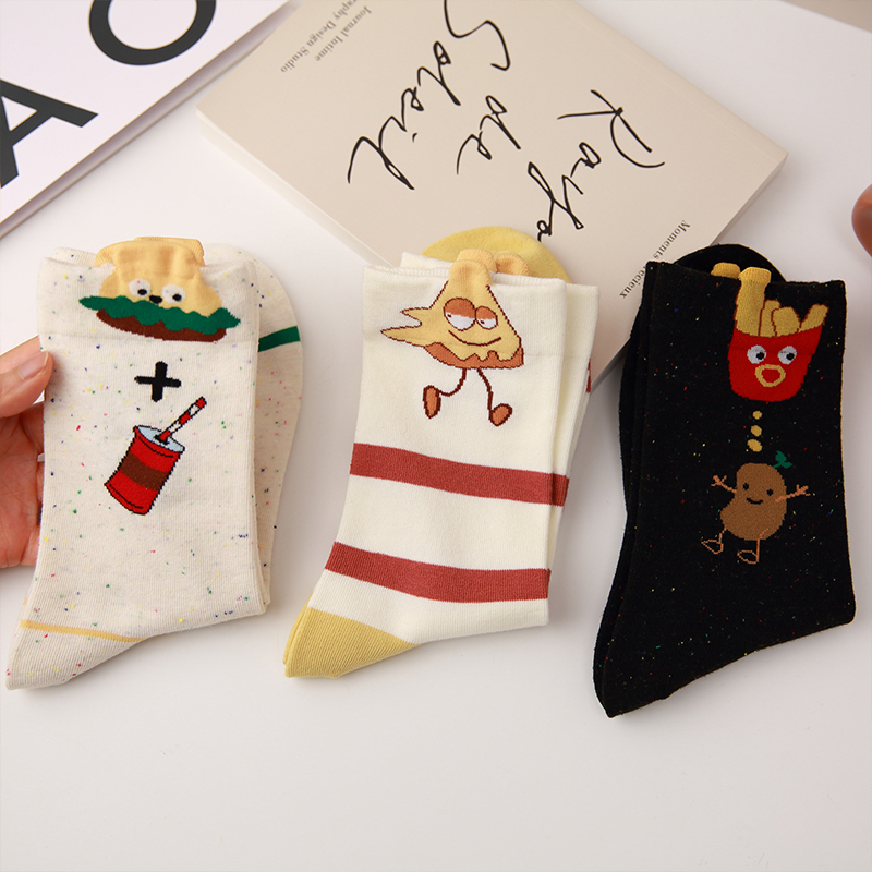 爆款 中筒袜2025新款 堆堆袜长袜可爱 秋冬款 卡通汉堡薯条袜子女款