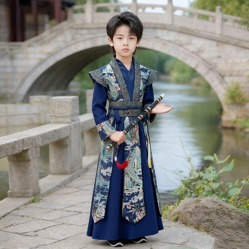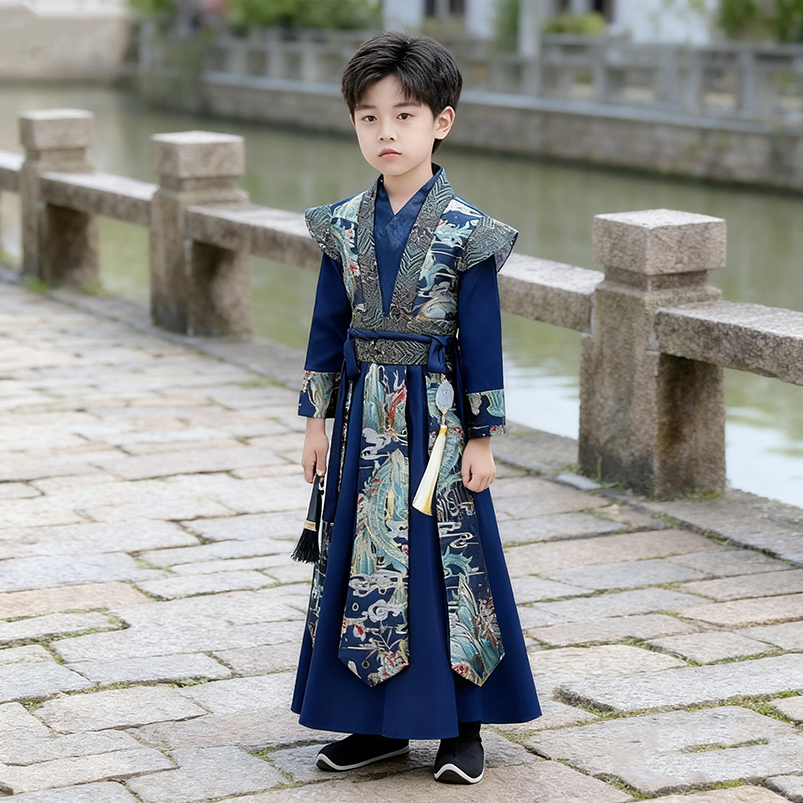 秋 国学服男孩帅气少爷服演出服儿童唐装 男童汉服春秋款 中国风古装