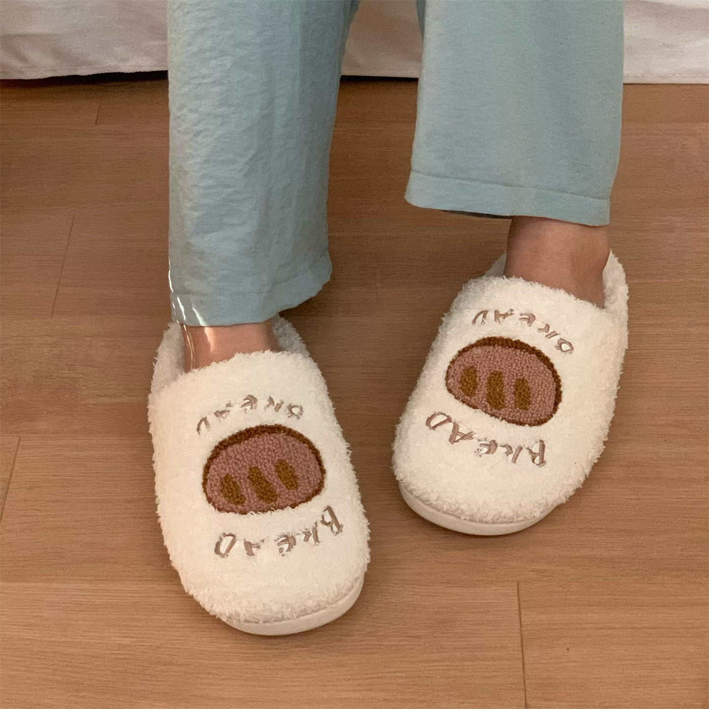 可爱软底毛毛鞋 居家冬季 男女舒适保暖防滑情侣时尚 趣味面包棉拖鞋