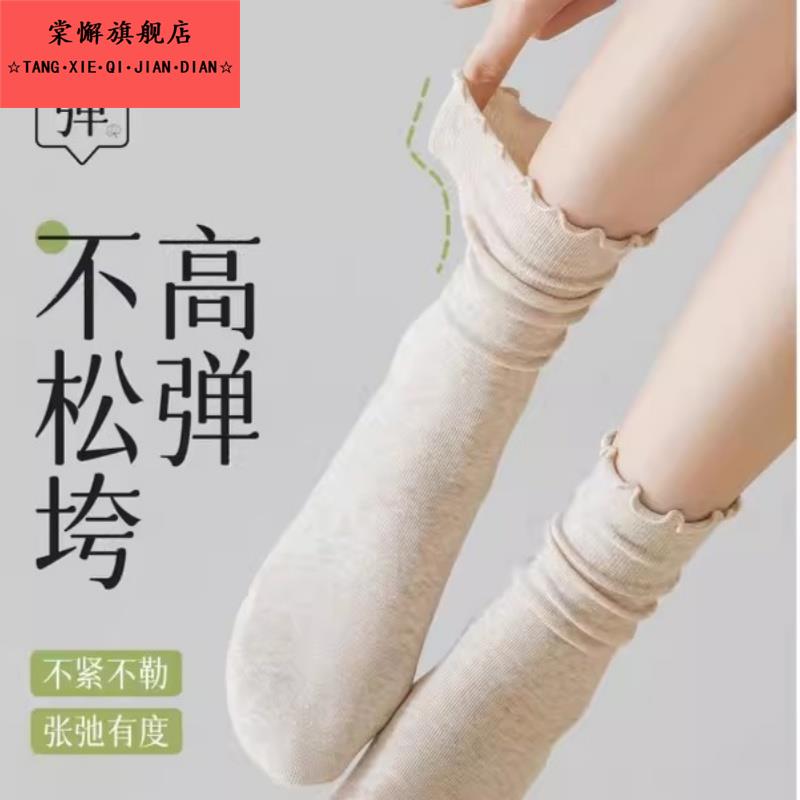 爆款 纯棉中筒堆堆袜2025新款 秋天女生白色长袜 薄款 花边袜子女秋季