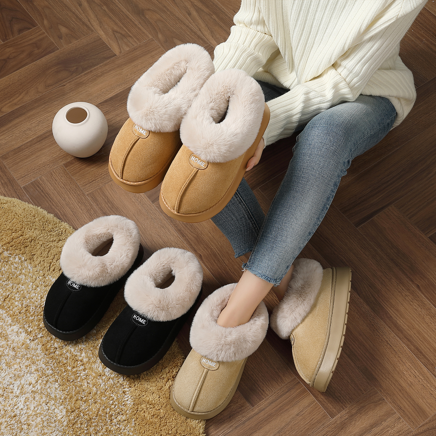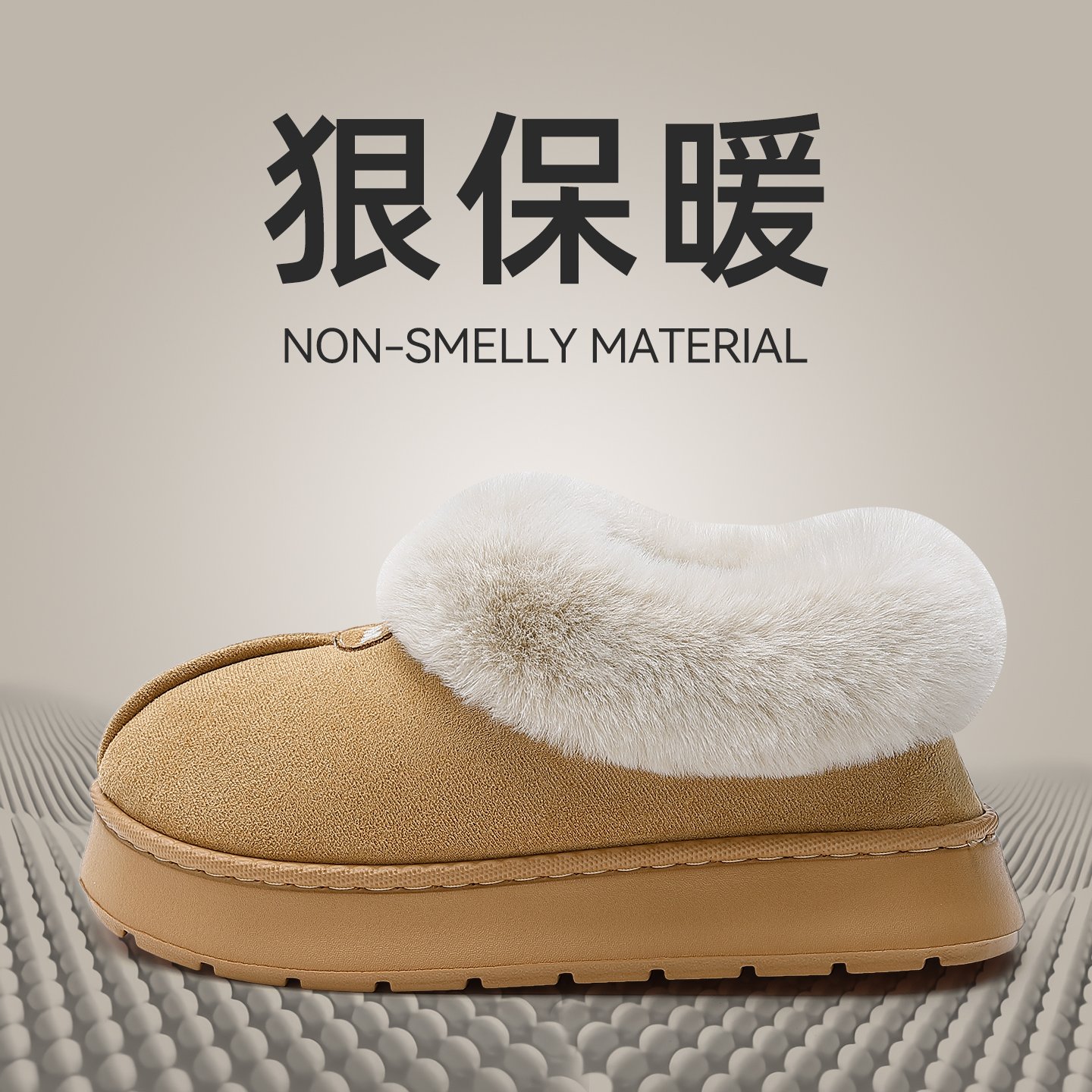 防滑厚底保暖毛毛加绒包跟棉鞋 高帮棉拖鞋 2025新款 秋冬季 女冬 女款