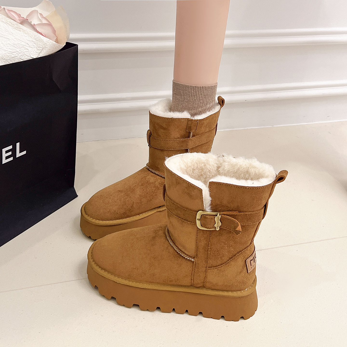 户外潮流百搭东北旅游女棉鞋 雪地靴防滑舒适女鞋 加绒保暖新款 冬季