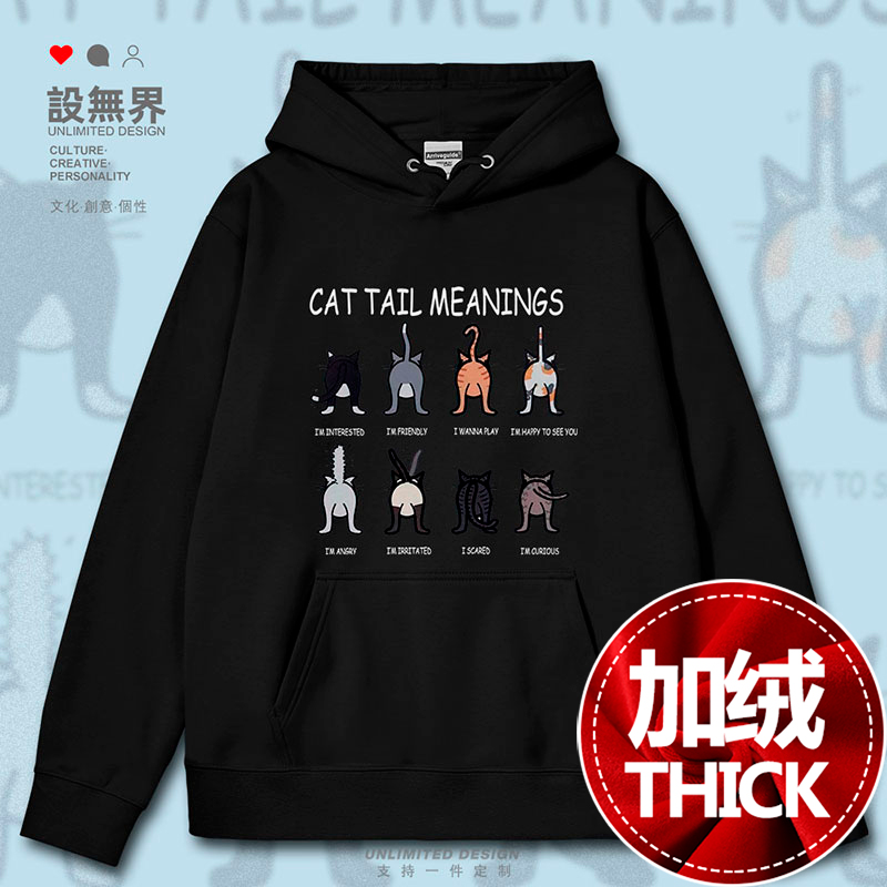 无界 潮设 解读猫尾巴指南可爱趣味连帽卫衣男女个性 创意加绒帽衫
