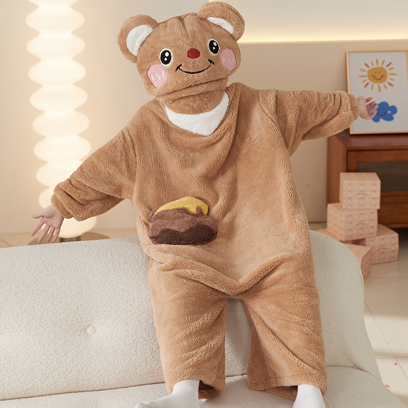 情侣睡衣 tbh野兽派家居熊猫嘭嘭法兰绒家居服套装 可外穿秋冬长袖