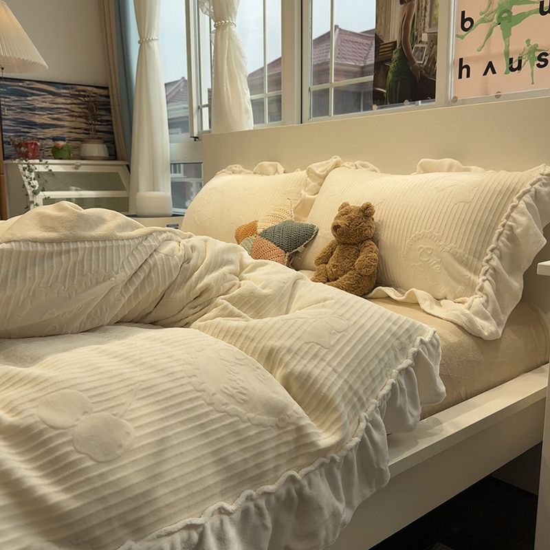 保暖加厚大花边雕花牛奶绒床上四件套珊瑚绒被套法莱绒床单三件套