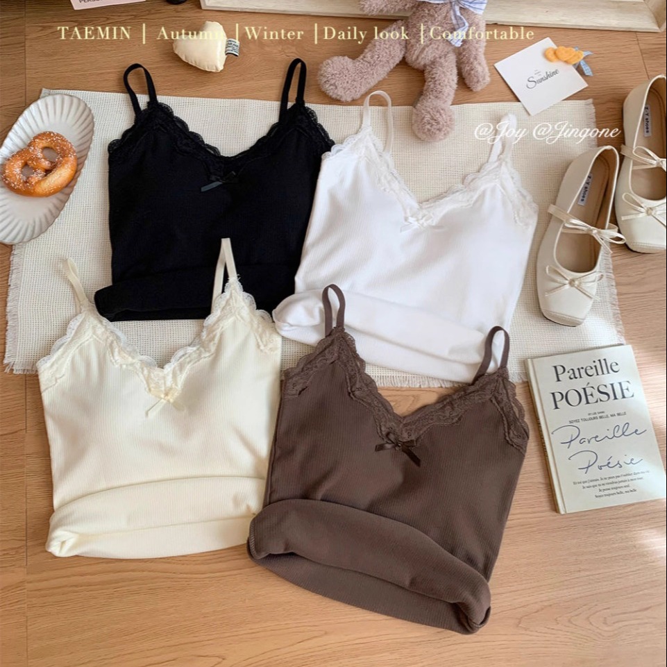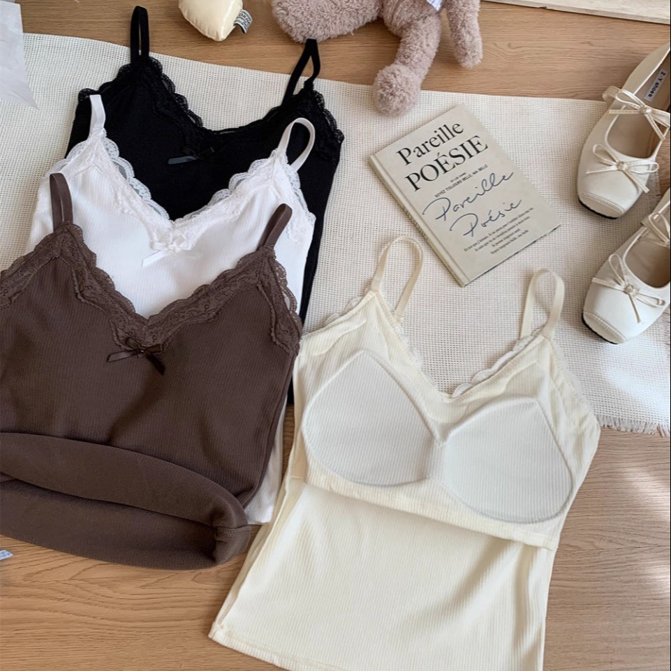 带胸垫显瘦百搭 一体式 初秋新款 甜辣磨毛蕾丝花边吊带背心女修身