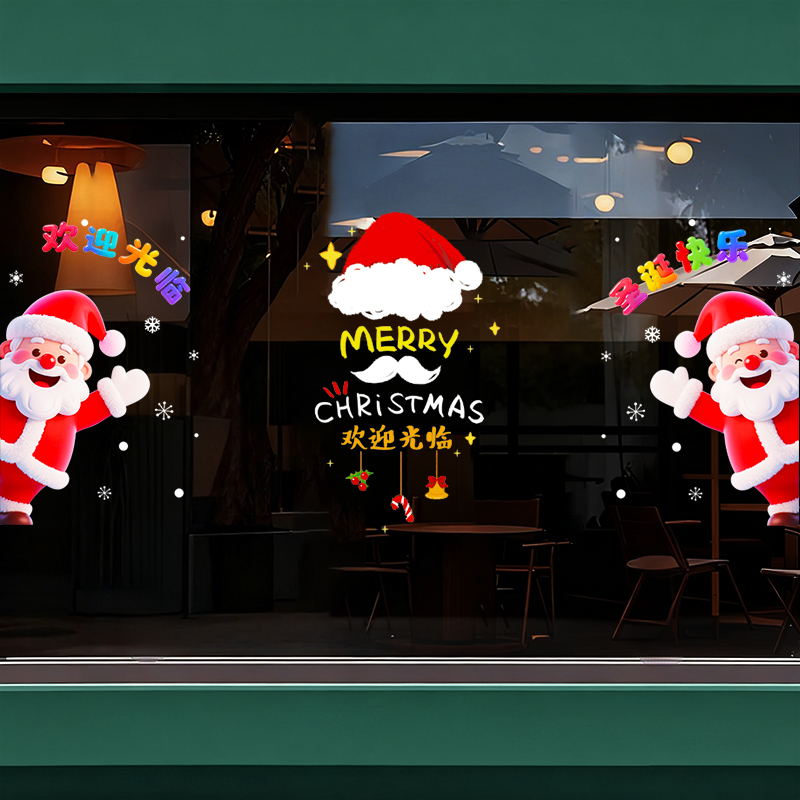 2026圣诞节装 扮场景氛围布置窗贴橱窗 饰玻璃门贴纸自粘新年商场装