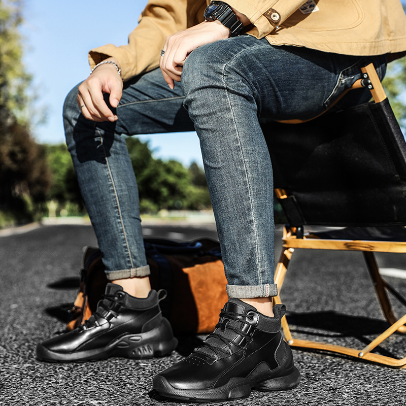 鞋 防滑真皮高帮上班工作黑色工装 秋冬休闲百搭潮流男士 马丁靴男款