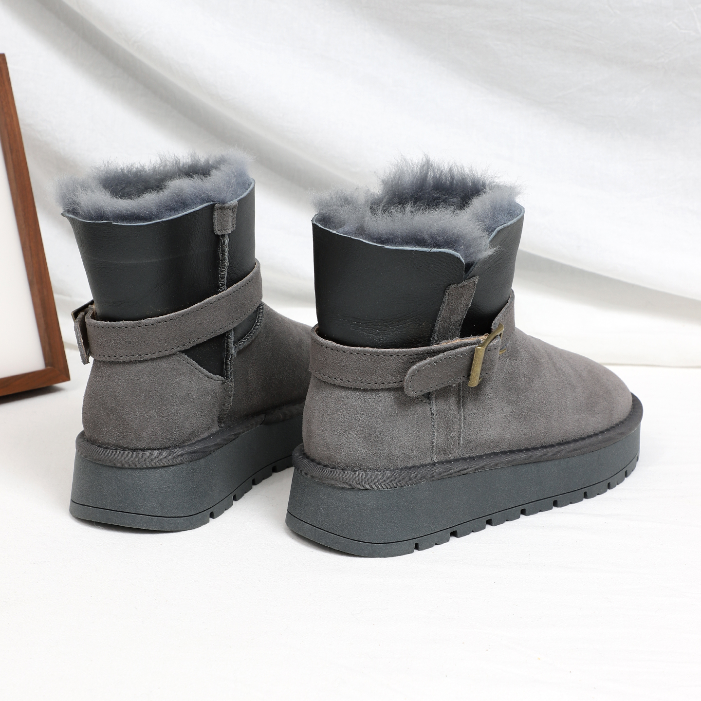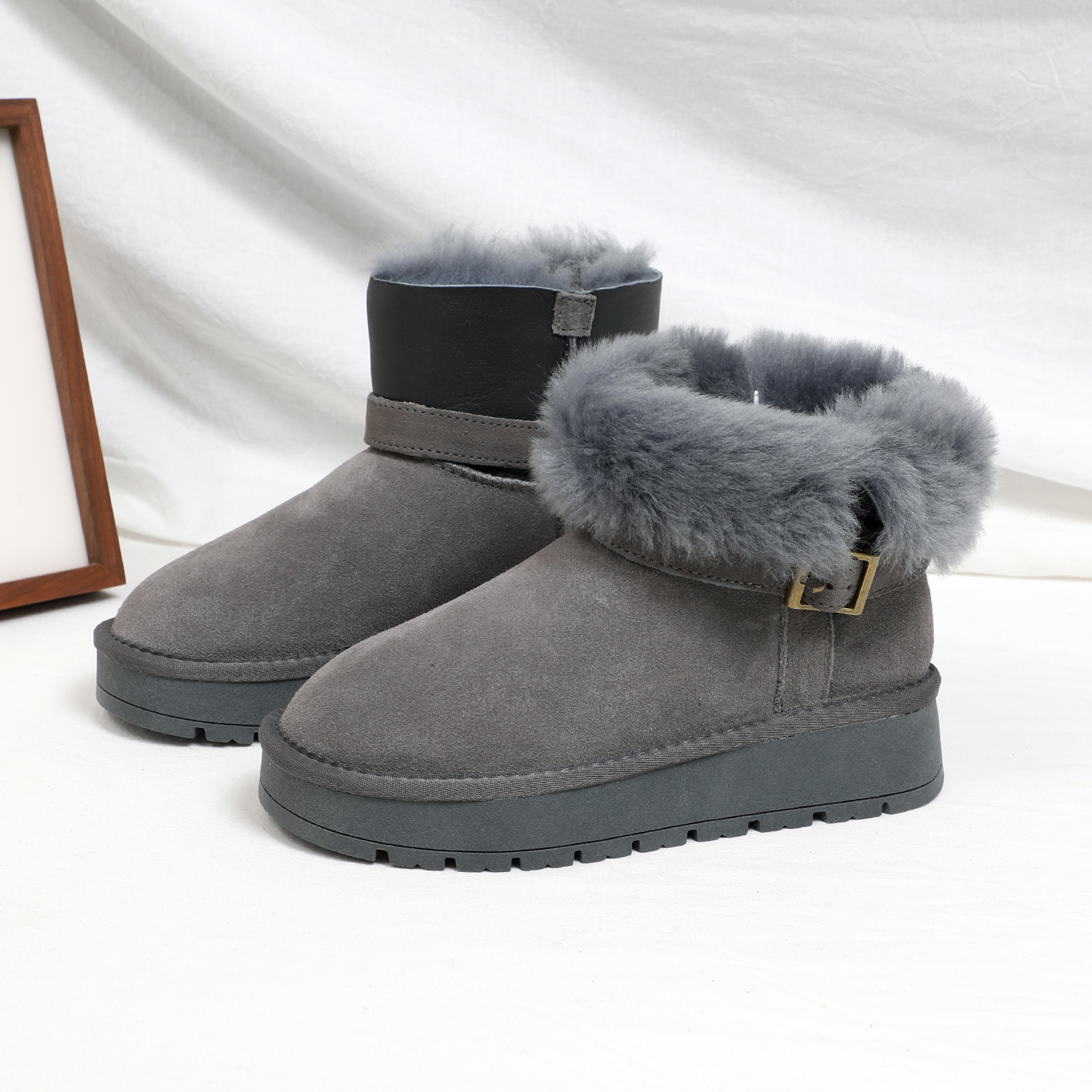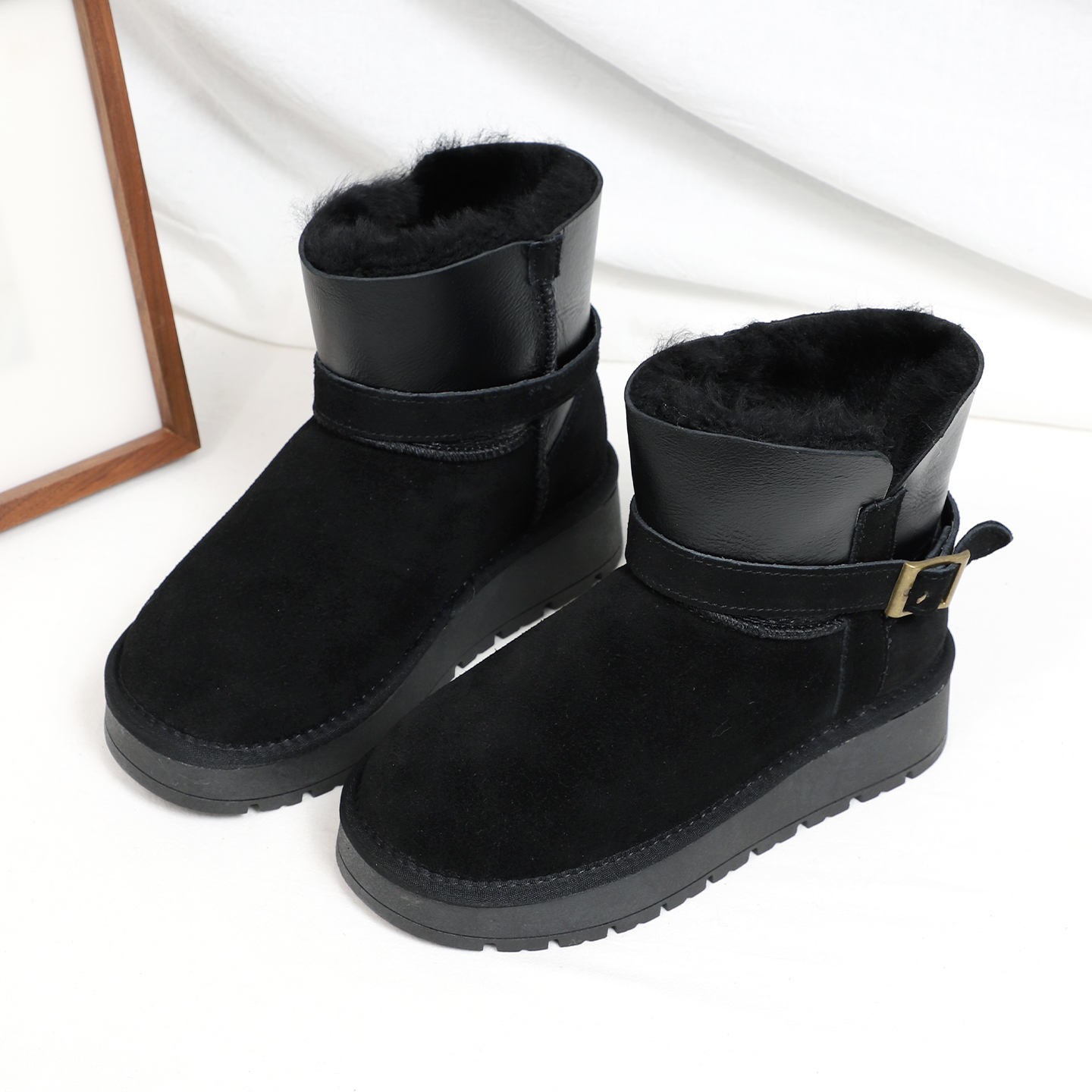 防滑东北棉鞋 真皮羊毛雪地靴女加厚保暖套筒短靴时尚 新款 2025冬季