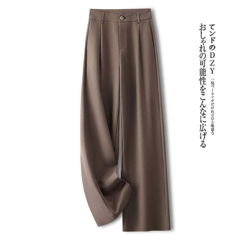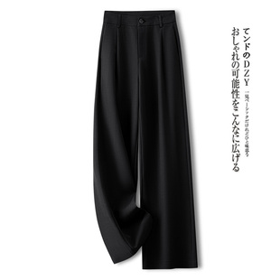 女春秋新款 休闲直筒慵懒松弛感裤 高腰垂感窄版 裤 子 西装 黑色阔腿裤