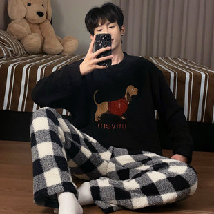 法兰绒家居服套装 加绒加厚珊瑚绒秋冬大码 新 睡衣男冬季 南极人男士