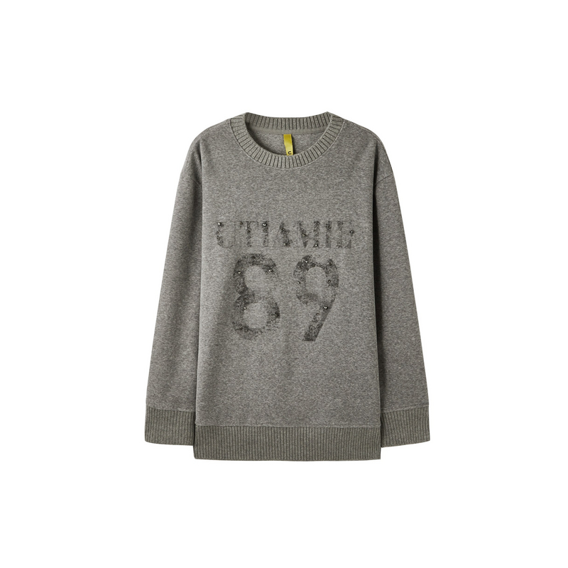 新款 复古风卫衣女烫钻廓感慵懒休闲圆领上衣尤缇2025冬季 TI美式