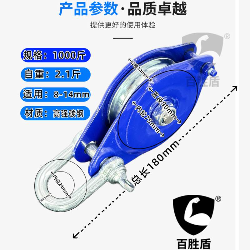 成华巨力国标重型单轮起重滑轮钩1吨2吨3吨5吨滑车钢丝绳吊轮吊环